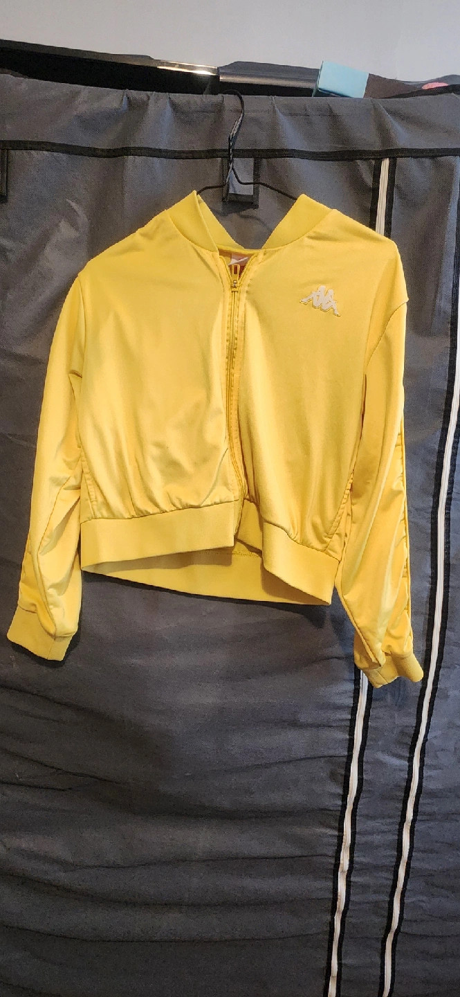 10Selling a variety of clothing items! There is a Kappa yellow jacket, an Adidas black cropped sweater, a camouflage jacket, and a Nike cropped sweater. All items are in great condition. More sweaters in bags, also includes 2 pair of pants. Sizes range from women's small to medium.