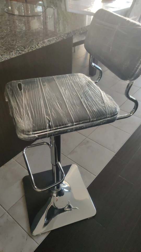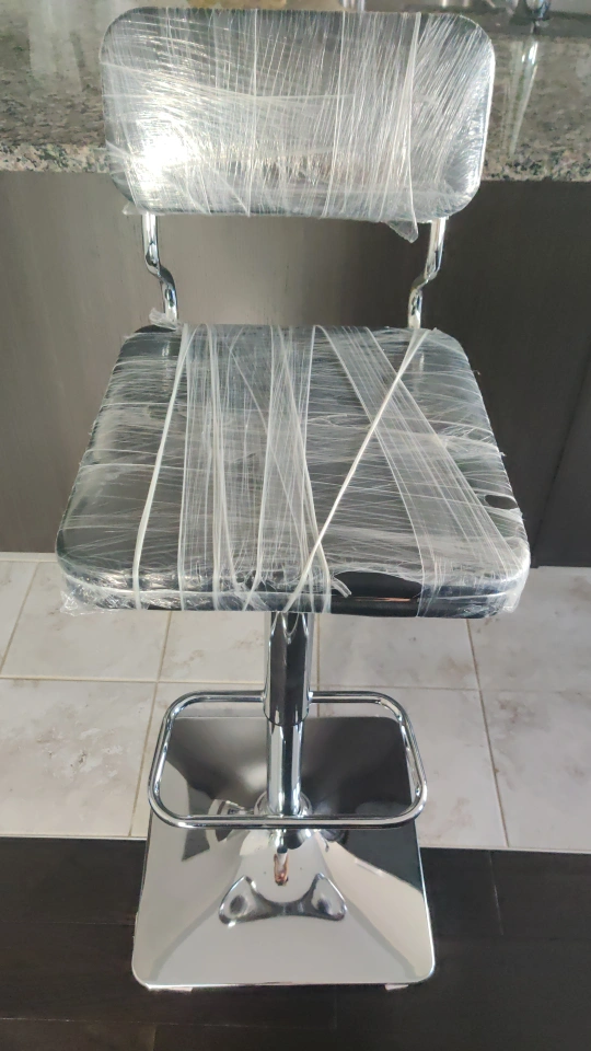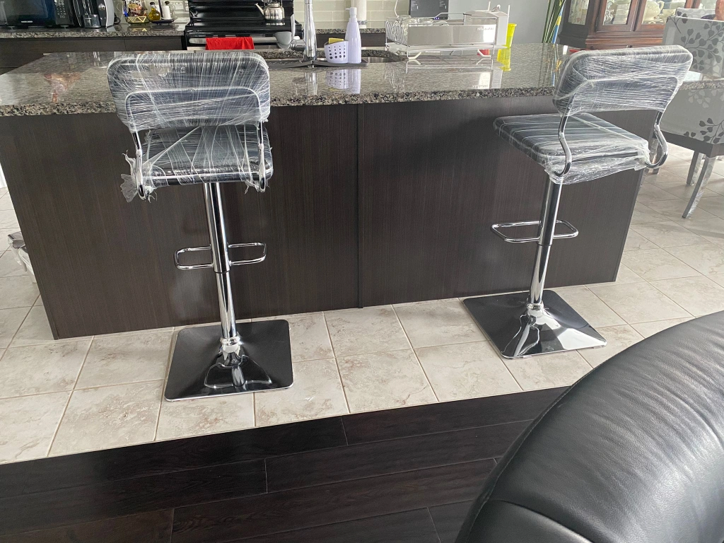 brand new . sealed . Two bar stools, black leatherette seats and backs. Chrome metal base and footrest. Adjustable height. Still in plastic wrap. moving sale Cash only London Ontario location