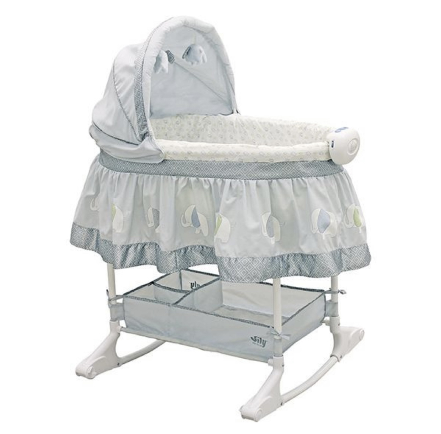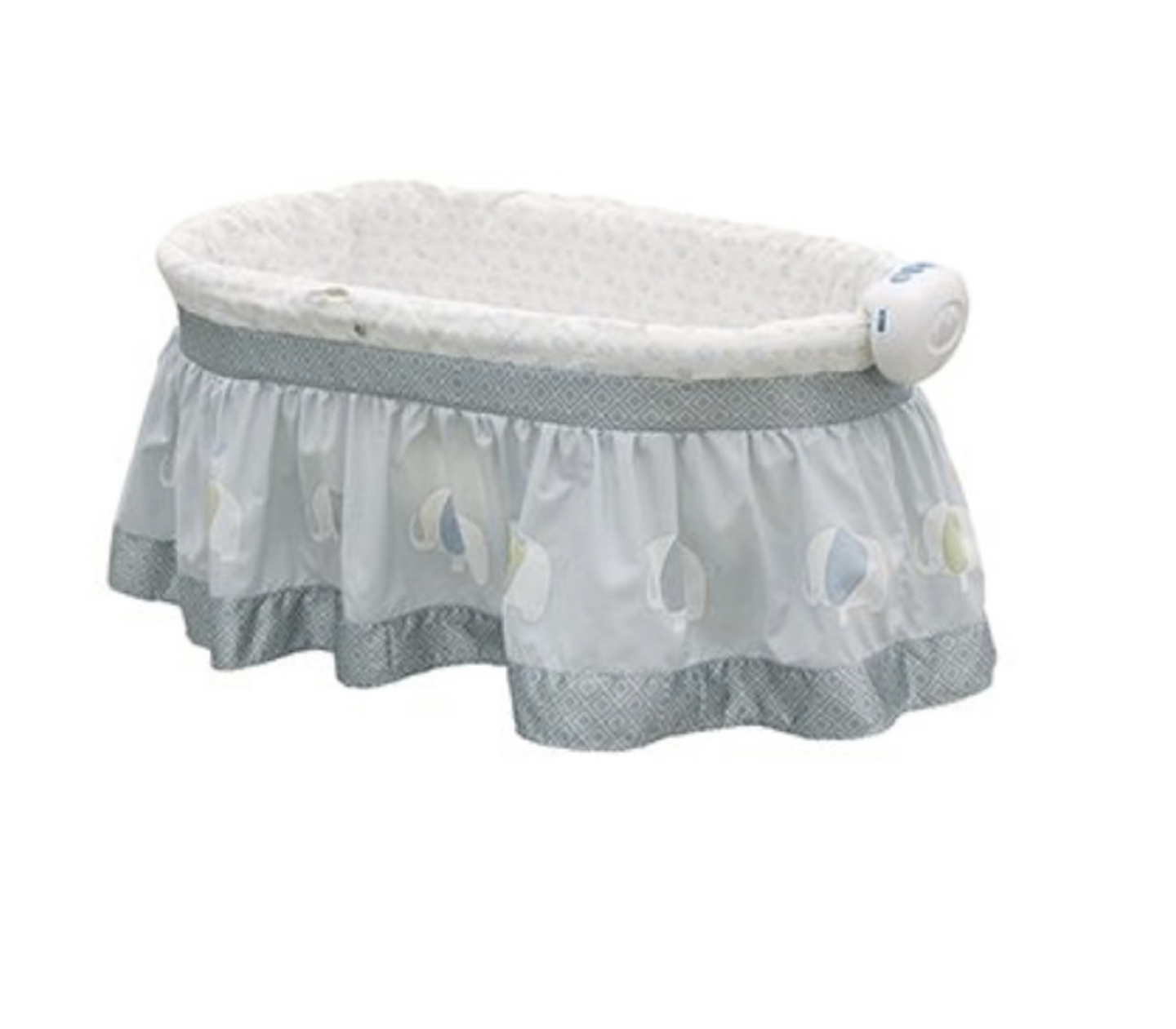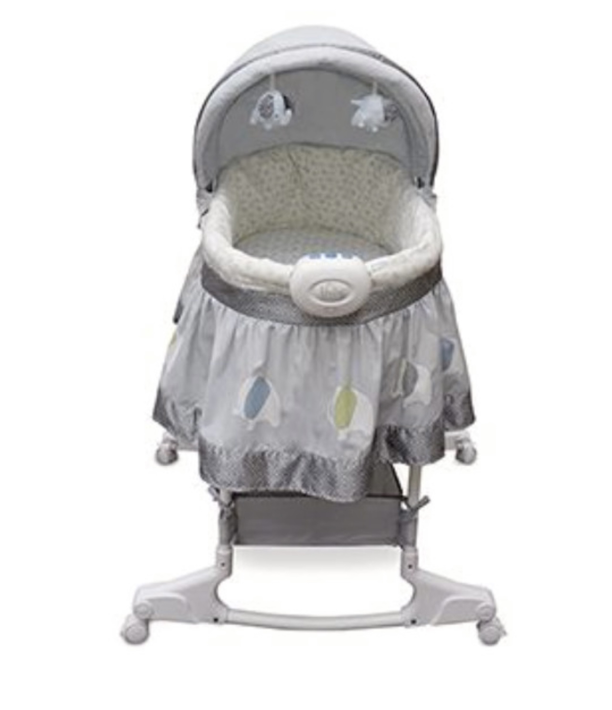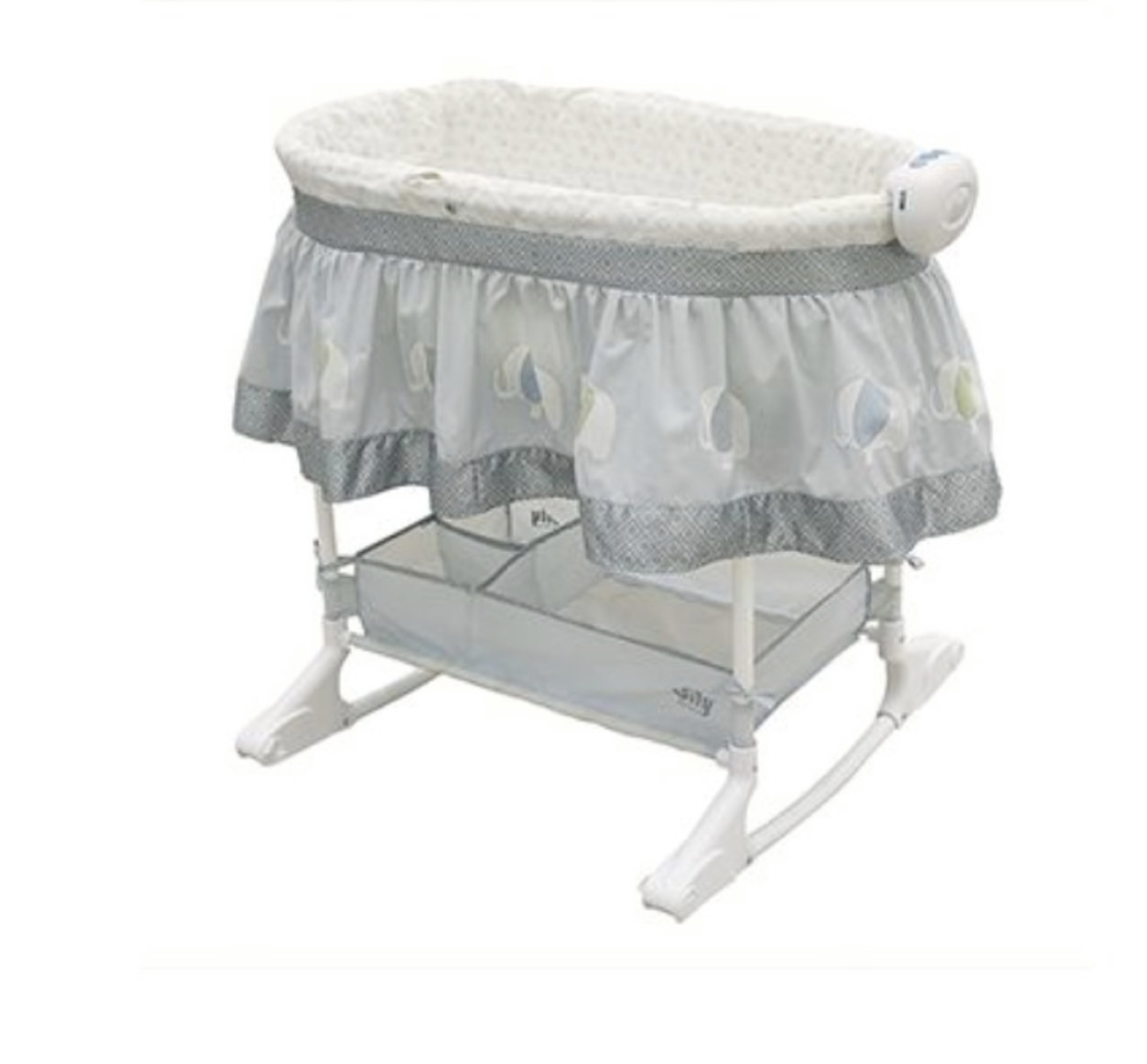 1000+2-in-1 Bassinet BY Bily Elephant Print - 0-3 Months, Stunning, Model # B4410EPN The 2-in-1 Bassinet by Bily helps keep your little one close to you, secure and extremely cozy day or night. Your precious newborn will be soothed with the comforting music, soft lights and very gentle vibrations. This bassinet is a rocker or converts to a stationary cradle with retractable casters and adjustable canopy. For Mom there is a large storage basket and for baby 2 soft toys. The 2-in-1 bassinet is the perfect solution for busy parents around the house as it offers a more mobile option to a traditional crib for the early months. Recommended use for babies unable to roll over, up to 18 lbs. and 3 months old or less Rocking or stationary bassinet converts to a cradle Adjustable canopy with 2 soft toys Comforting music, soft lights & soothing vibrations Large storage basket; retractable casters Requires 3 AA batteries (not included) Everything you see is included, even the crib sheet!! Amazing storage underneath the diapers!! Has wheels so you can push it around and it also rocks. SO So Amazing!! I 100% recommend it !! Pick up in the Lobby of my Condo, Located at Finch and McCowan in Scarborough