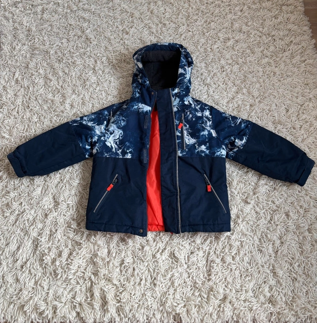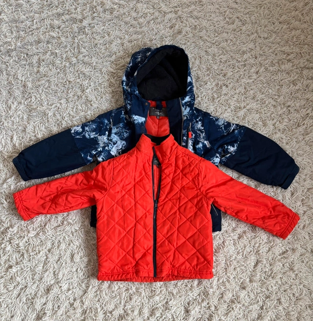 282 in 1 convertible Winter jacket with a light jacket insert. Each jacket can be used alone or they can be combined to provide super warmth. It’s like owning 2 jackets in one. Very versatile and adaptable to fluctuating weather. The inner jacket zips into the outer shell and attaches by velcro at the cuffs and back of the neck so it stays put very well. The inside of the hood is lined with fleece. Adjustable cuffs Size S (6 yrs) In very good condition with light signs of wear.