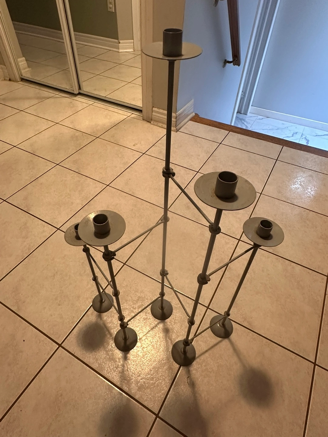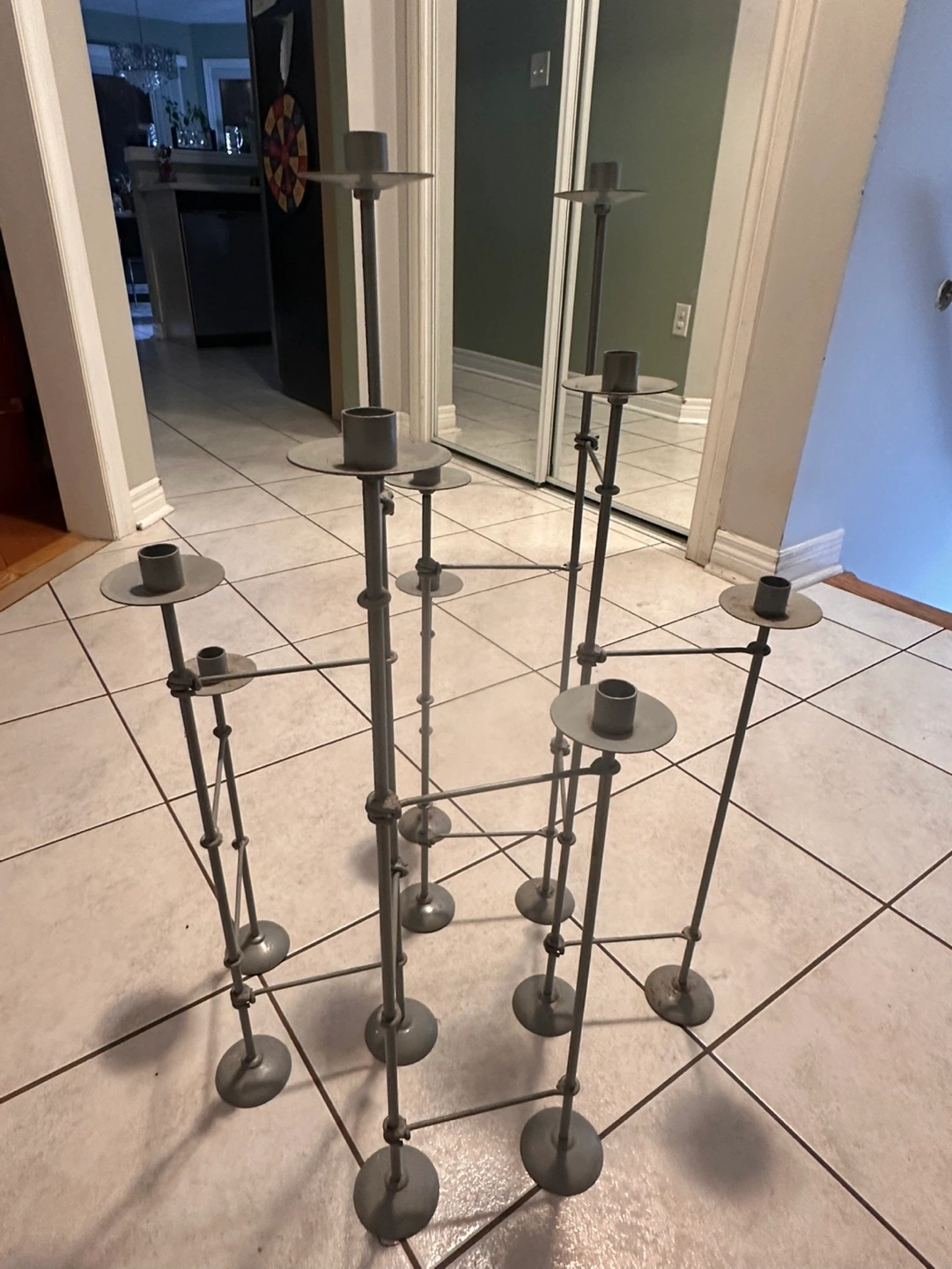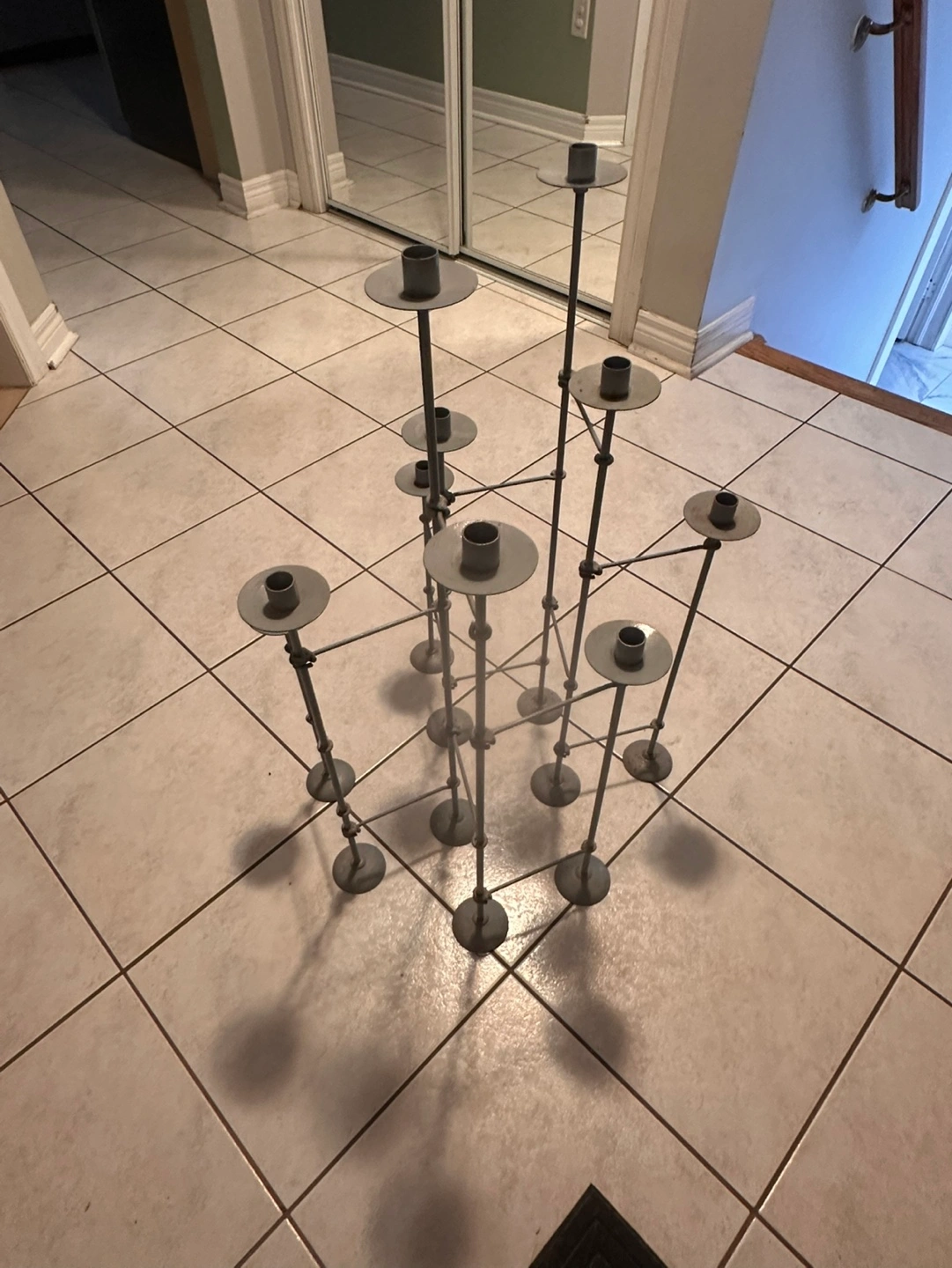 IKEA Metal candle holder with a modern design. Holds up to 8 candles. Great for a modern home decor. Could use some TLC. Cash only please. Available for pick up.