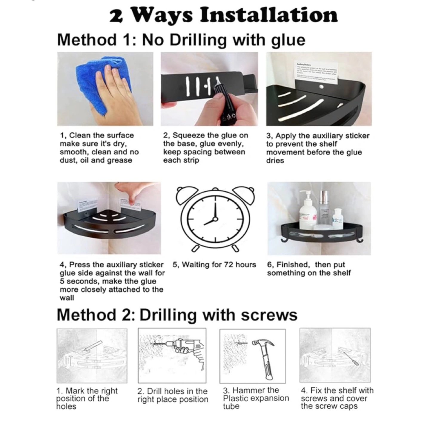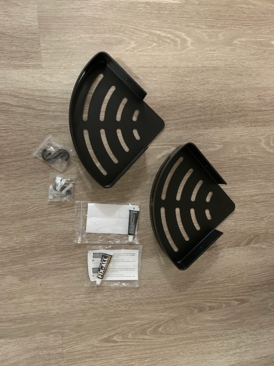 *CASH Only* Brand New Bathroom shelves made of durable Space Aluminum with extra thickess to ensure a greater weight. Smooth finish and lightweight, will not rust. Can hold up to 33 lb. Can be installed with glue or screws. [Check Out My Other Listings]