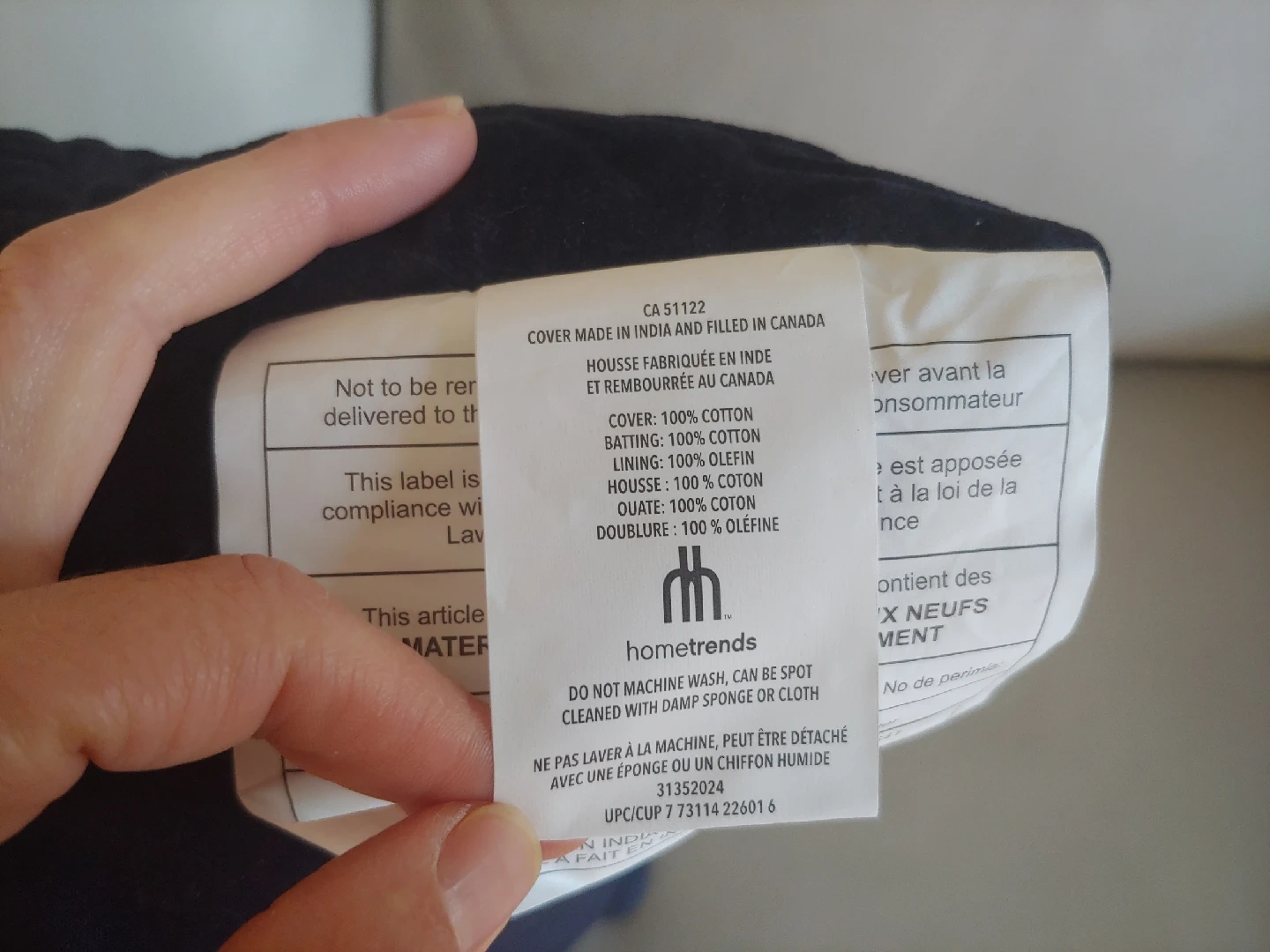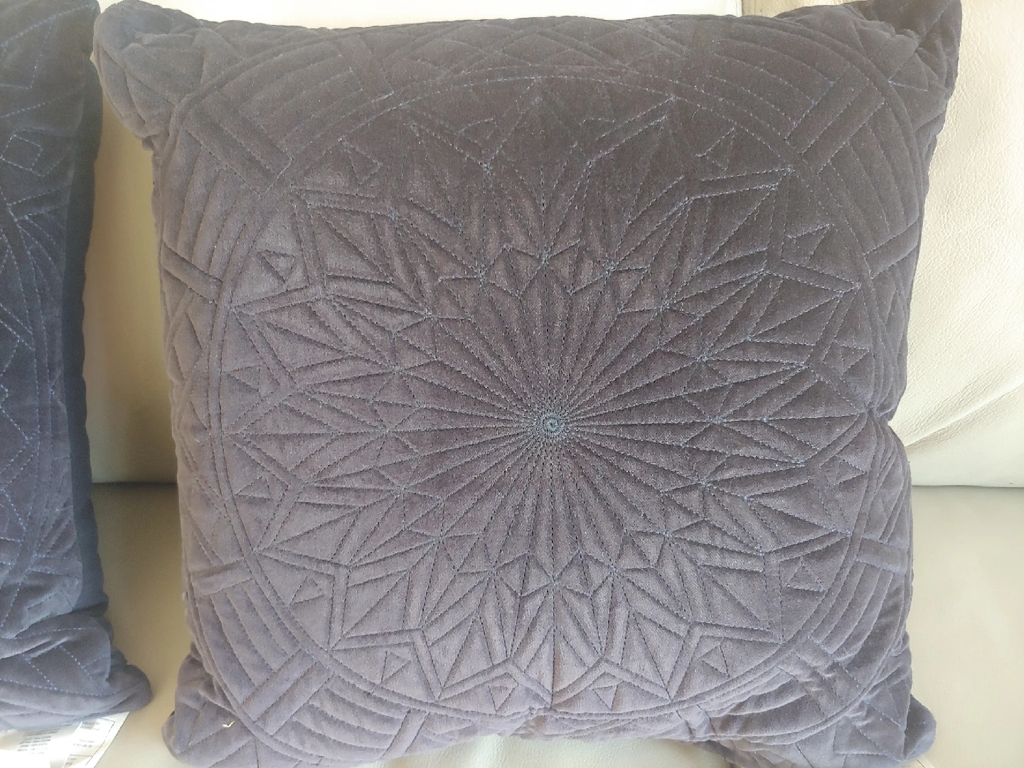 784Selling 2 Hometrends decorative cushions. It is 18 inches by 18 inches (46 cm x 46 cm). brand new never used. Navy blue and velvet front. both $10