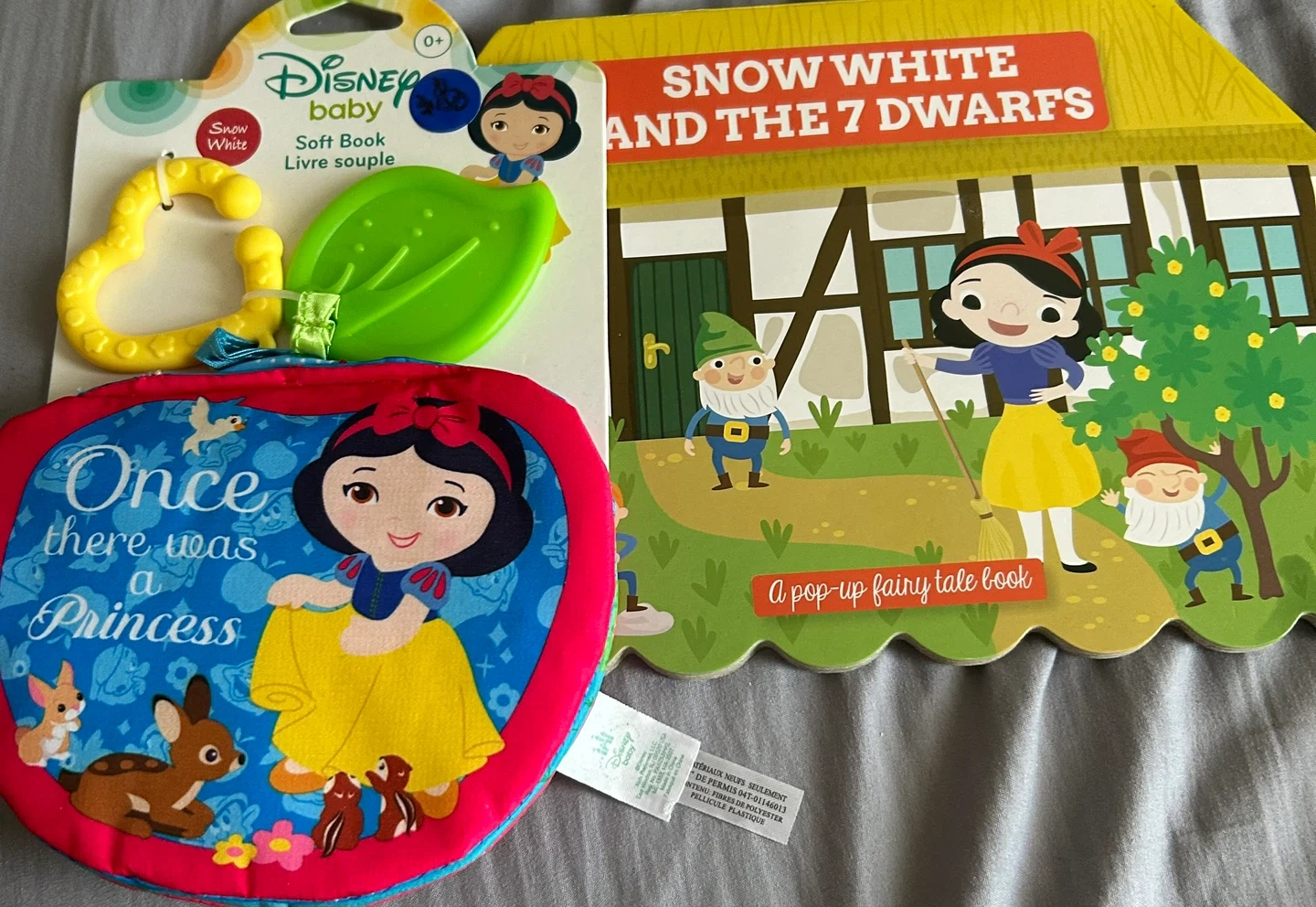 92A cute set of Disney Baby Snow White books! Includes a soft book with crinkly pages and a pop-up fairy tale book. Perfect for little ones! Giftable never used. Smoke and pet free home. Porch pick up in Binbrook. Price is for both