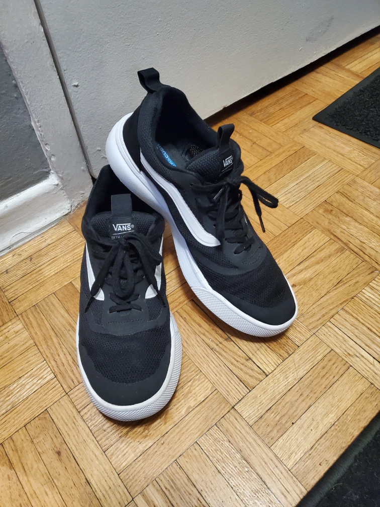 $55 each only cash price firm no delivery. Black and white Vans UltraRange sneakers. good condition only cash price firm no delivery. I have more shoes all size for Men's, Women's ,Boys Girls and Kids for sale. I have and app Facebook and app Kijjijji. Location Cawthra and Lakeshore Mississauga.