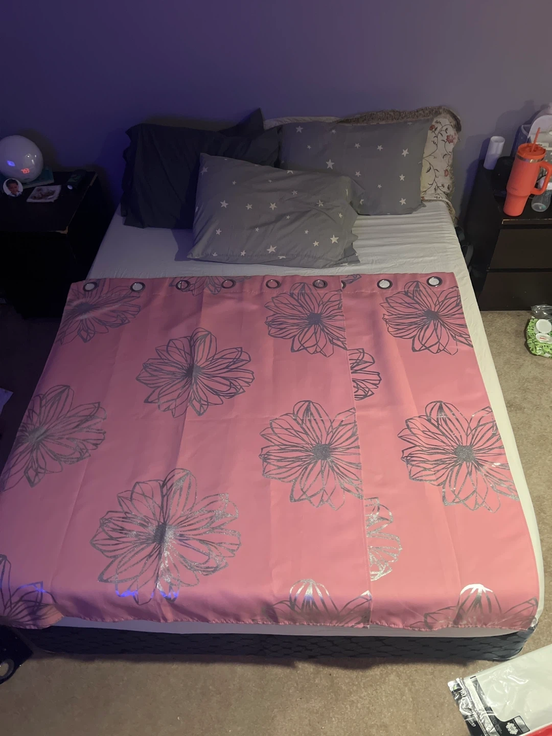 179Two set of pink curtains with silver flower Black out