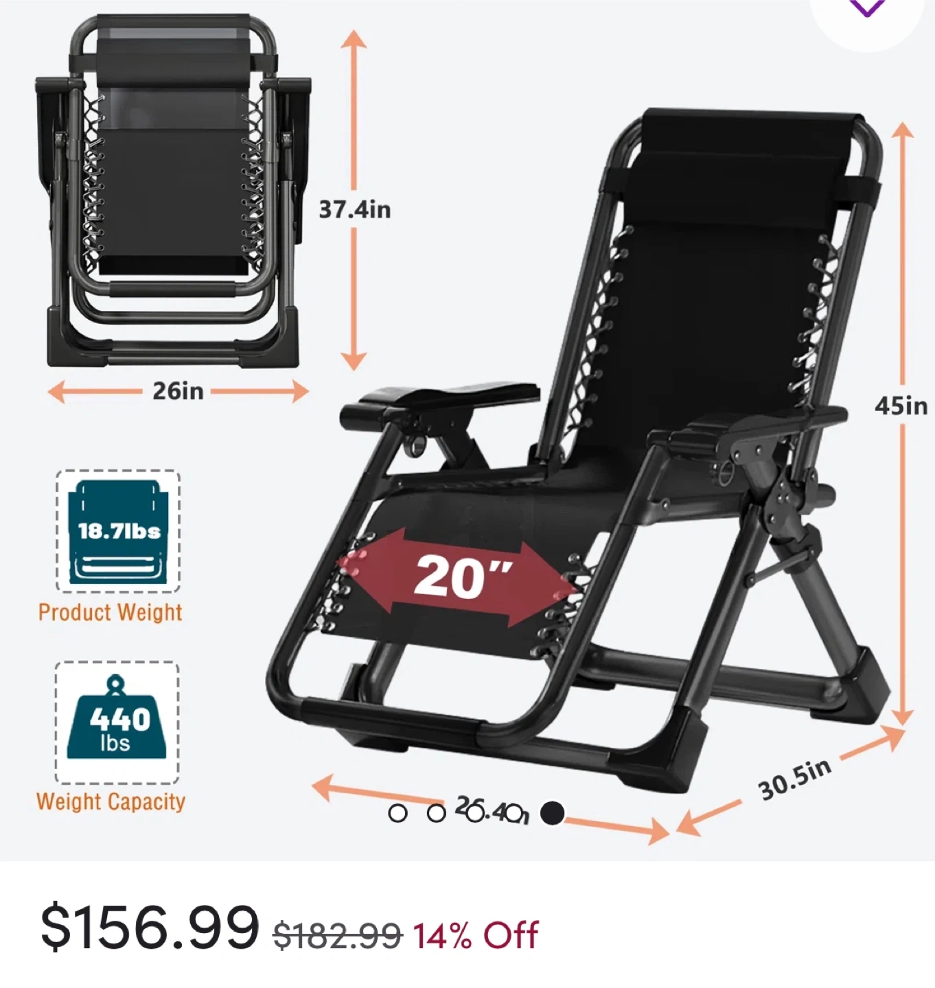 73Get ready to relax with this portable zero gravity lounge tow chair! It's perfect for camping, the beach, your backyard, or even the office. It features: - Soft, comfortable, and breathable material - Durable construction - Easy to change and wash zipper design Dimensions: - 66 inches long - 20 inches wide - Height adjustable