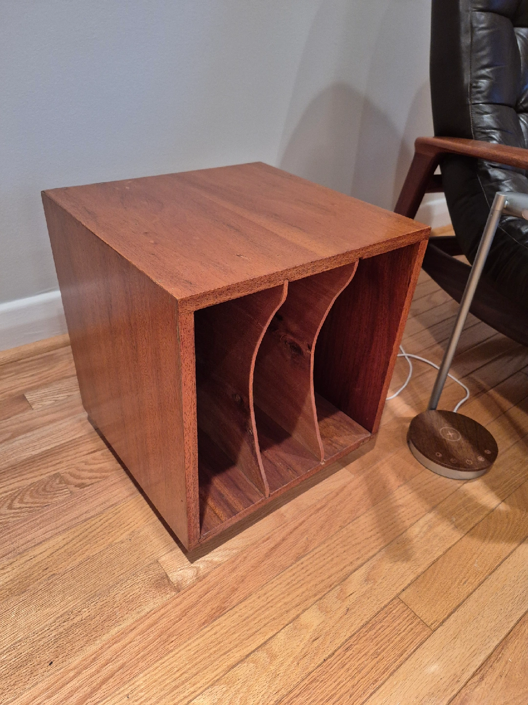 Pair (2) Custom designed and built vinyl record storage and display cubes. ◉ Can also be used to store large books. ◉ Each unit has 3 dividers, which are removable. ◉ Can be used with the open side facing into the room, displaying your record spines. ◉ Or with the back of the unit facing the room, presenting a clean tidy cube. ◉ Handy as end tables near a sofa or armchair, perfect for a lamp, a vase and your coffee. ◉ All-Wood. ◉ Sturdy, strong and stable. ◉ Heavy! 📷 See all 10 photos (all sides shown). 📏 16" high x 14.25" wide x 13.75" deep. Excellent condition. $75 or the pair. Price is firm. Selling as a pair. 👉 Pick up from Bathurst & Sheppard (house with driveway). It is on the ground floor but there are porch stairs to navigate. I can't help move but will happily hold doors.