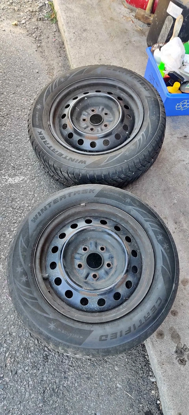 182 Rims and 3 tires 16 inch winter tires 2 are in good condition 1 tire is toast