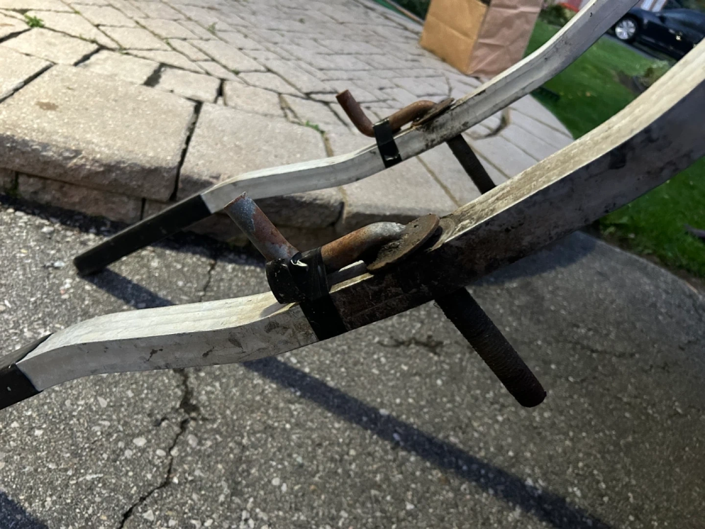 Selling a pair of snowmobile trailer tie downs. They are in great condition. Selling as we bought a new trailer.