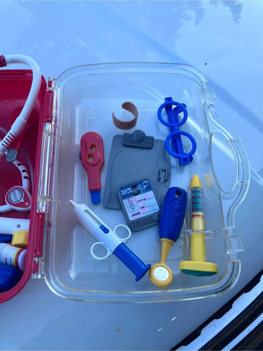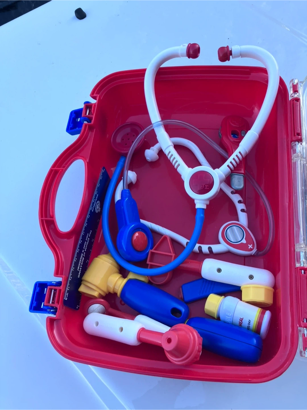 A fun doctor play set for kids! Comes with various medical tools like a stethoscope, syringe, and more, all neatly packed in a handy carrying case. Perfect for imaginative play and aspiring little doctors