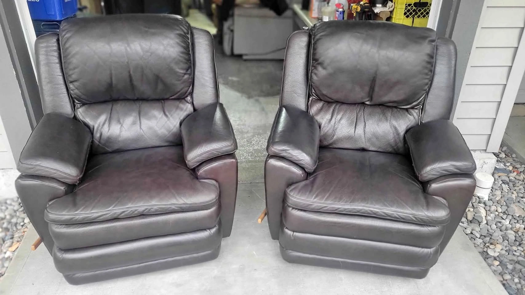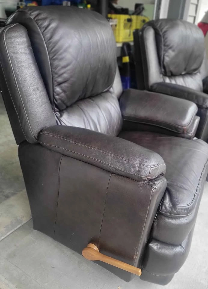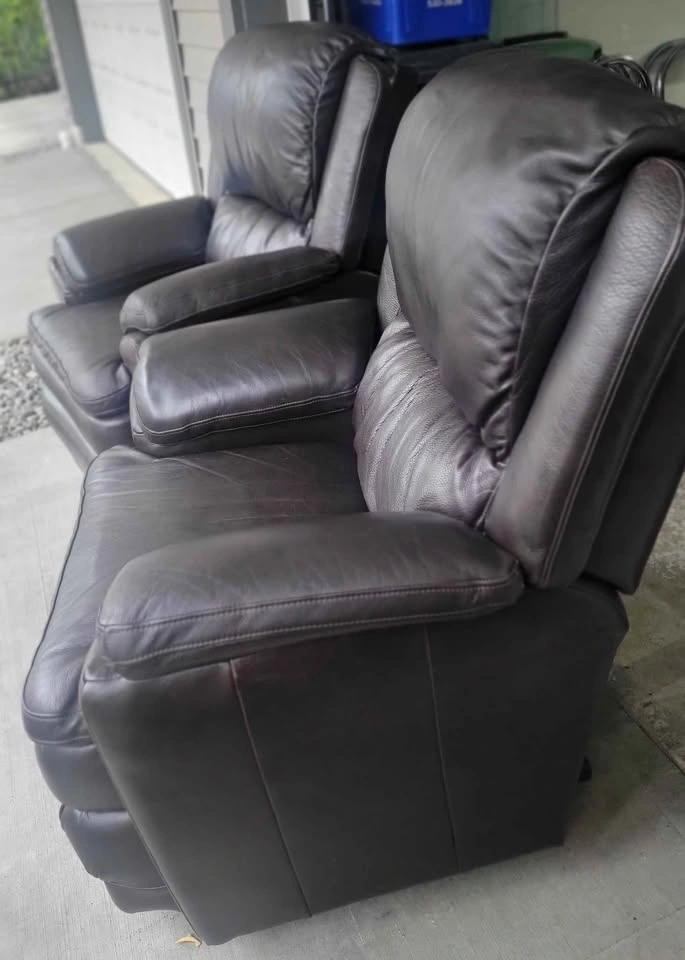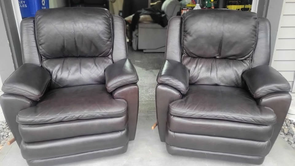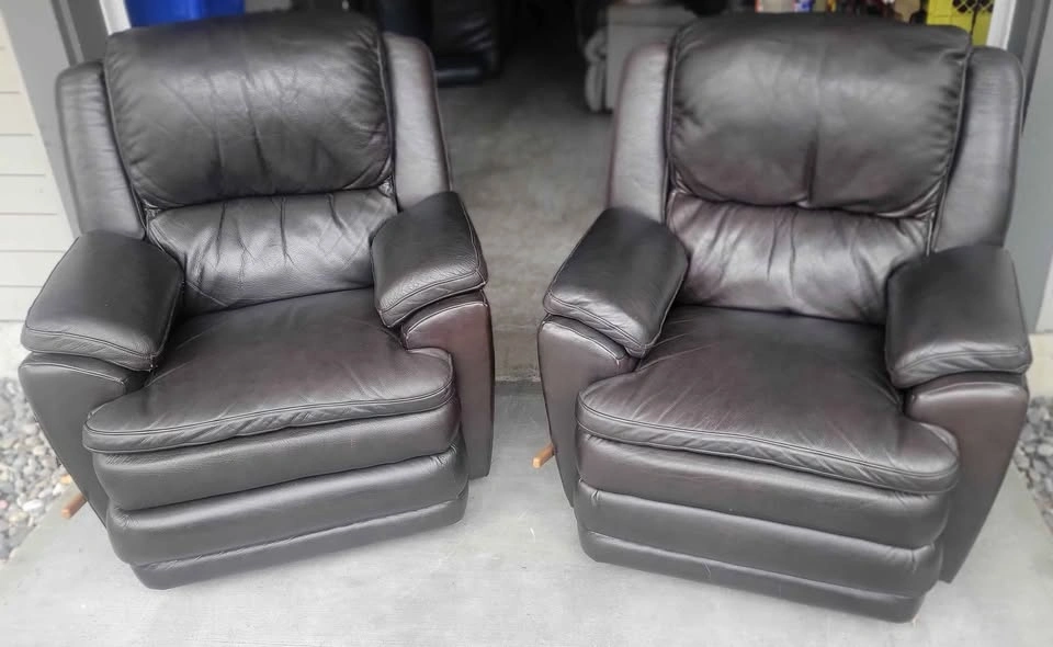 86Selling these 2 matching LaZBoy brand rocking recliners. They are made with 100% top grain leather on all sides and surfaces. No faux leather or vinyl anywhere. Asking $500 each or $900 for both pieces together. Both chairs work perfectly and function exactly as they should. They rock smoothly and can recline almost all the way flat for maximum comfort and convenience. No damage, stains, smells, or wear issues. Both pieces are in excellent lightly used condition. To get these same chairs today from LaZboy Galleries would cost well over $5k... Located in the Langley Township area near Home Depot. Can be picked up anytime during the day.