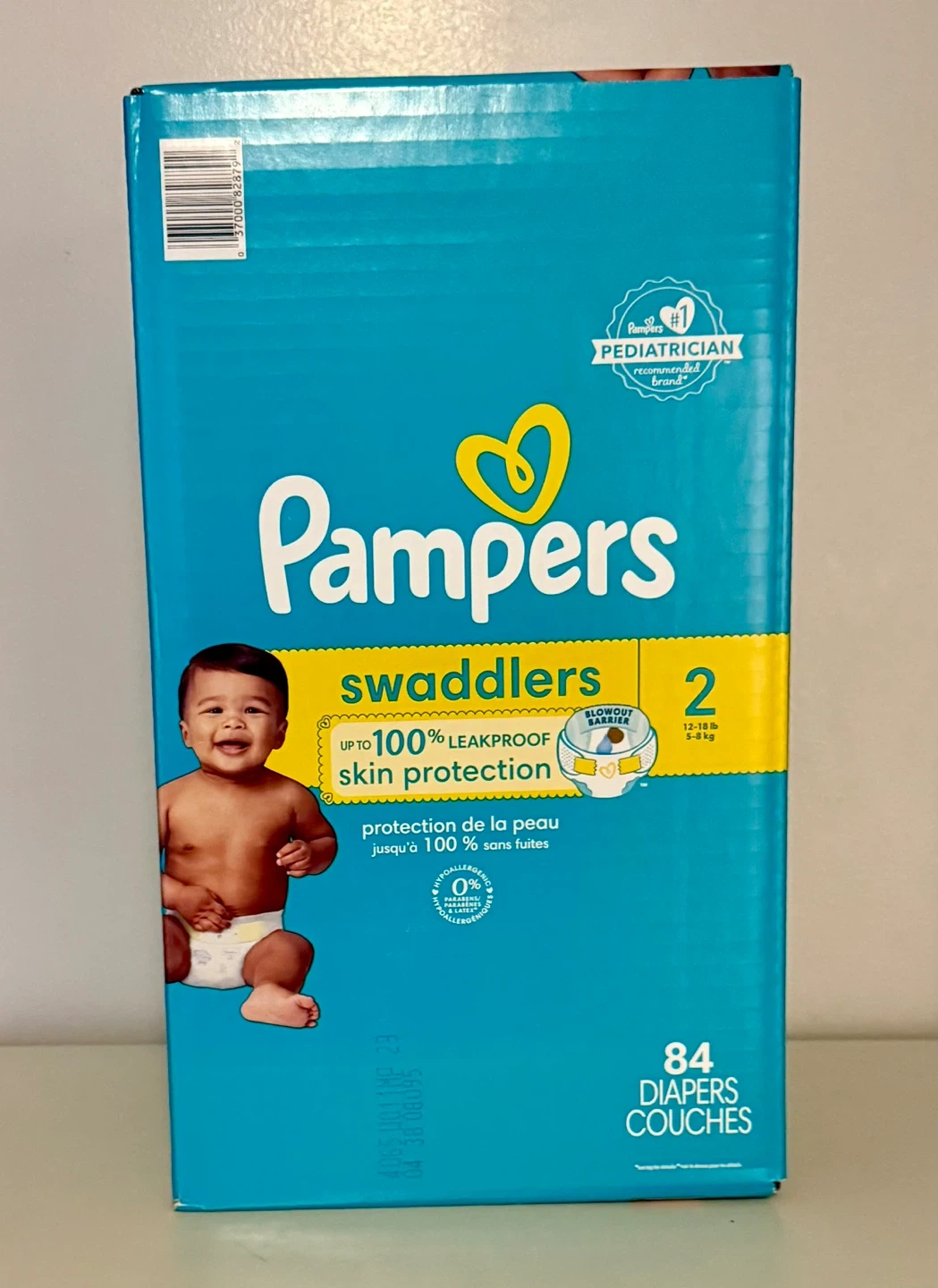 $20 Selling a box of Pampers Swaddlers diapers, size 2. This box contains 84 diapers. They offer up to 100% leakproof skin protection and are recommended by pediatricians. Perfect for your little one!