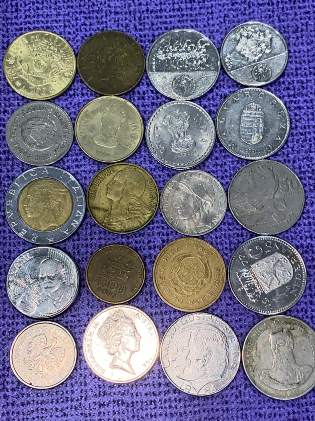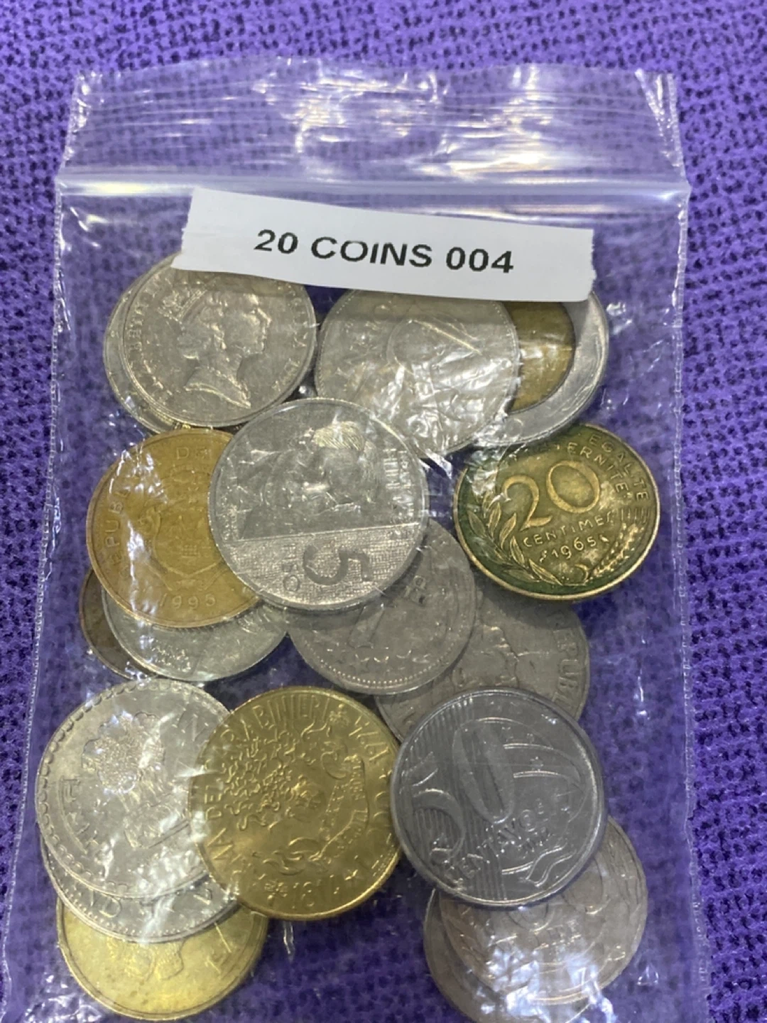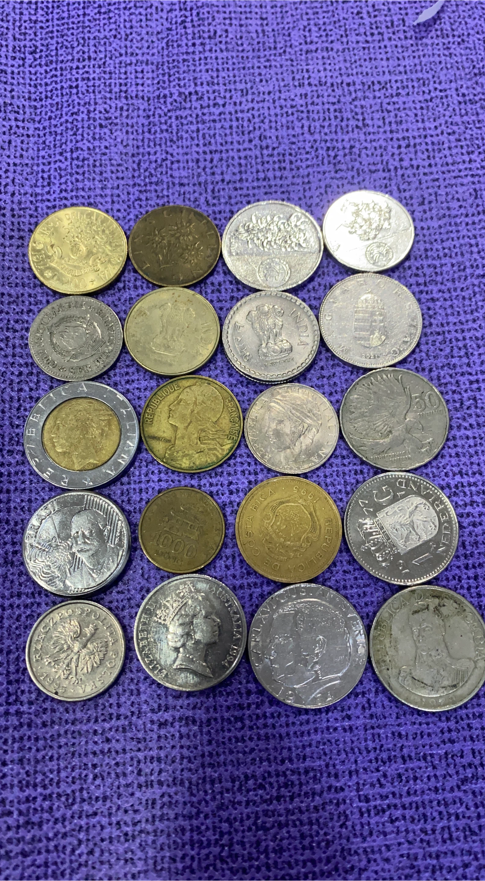 Selling a collection of 20 world coins in a plastic bag. They're in used condition, as you can see in the photos. Great for collectors!