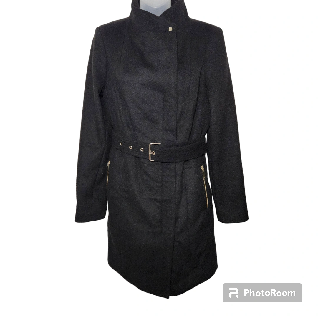 Vera Moda Wool Blend Black Mock Neck Belted Coat Sz M