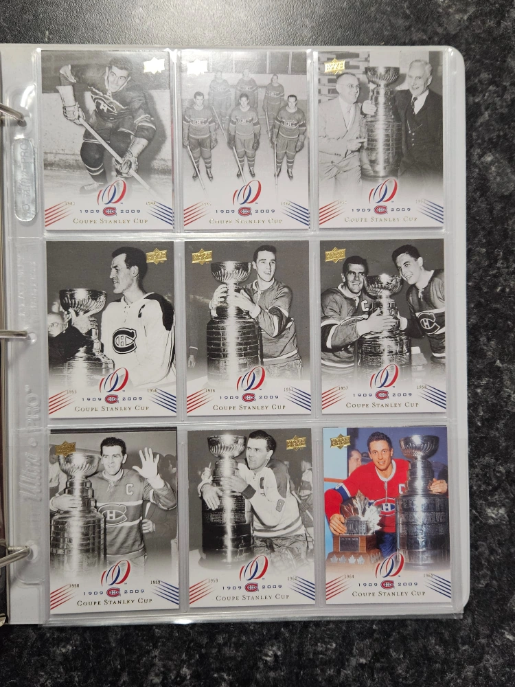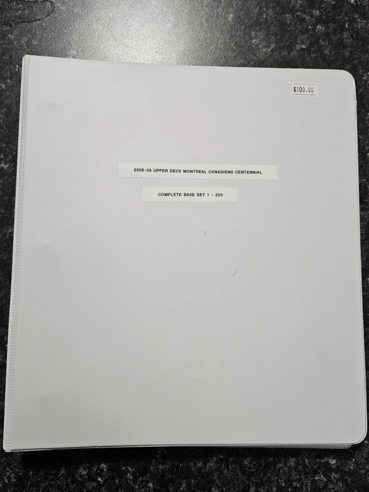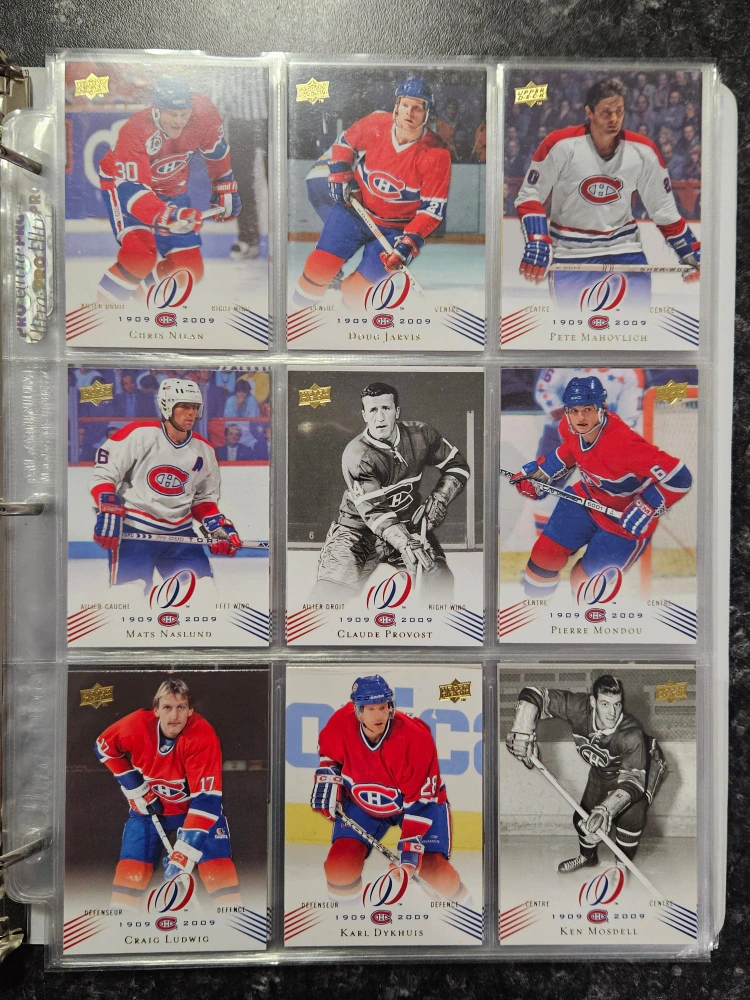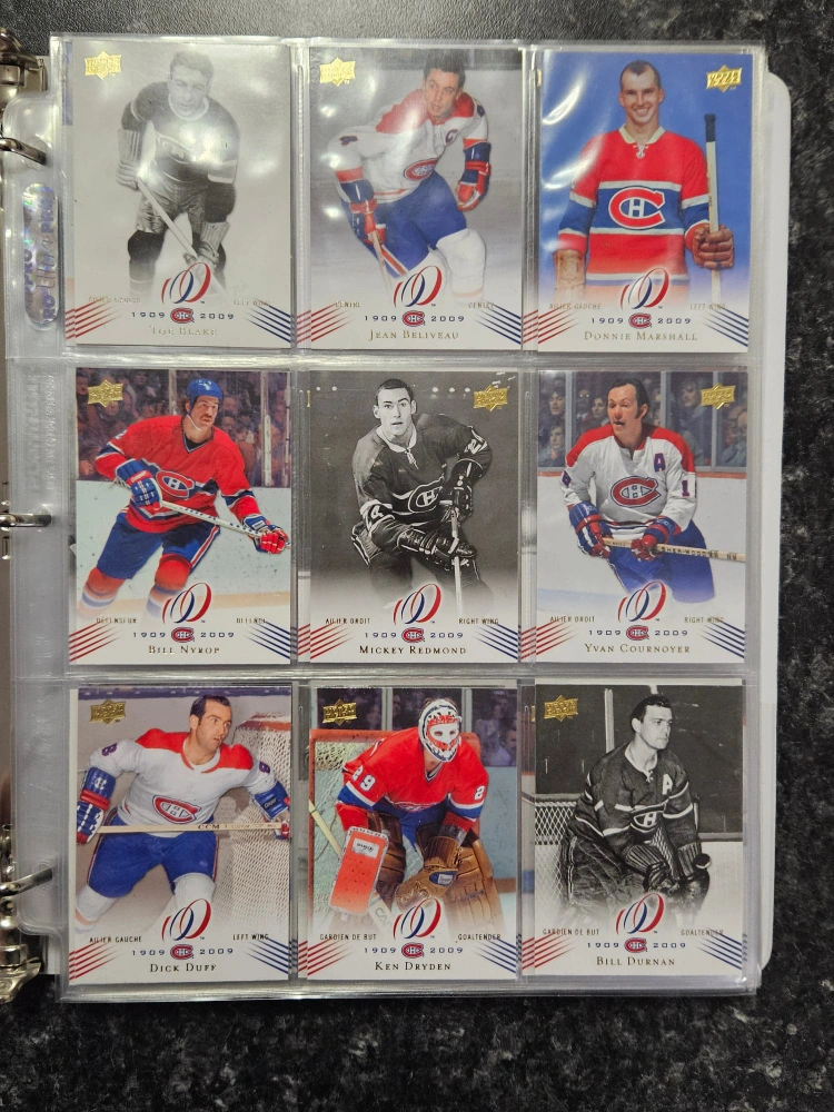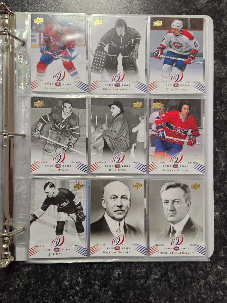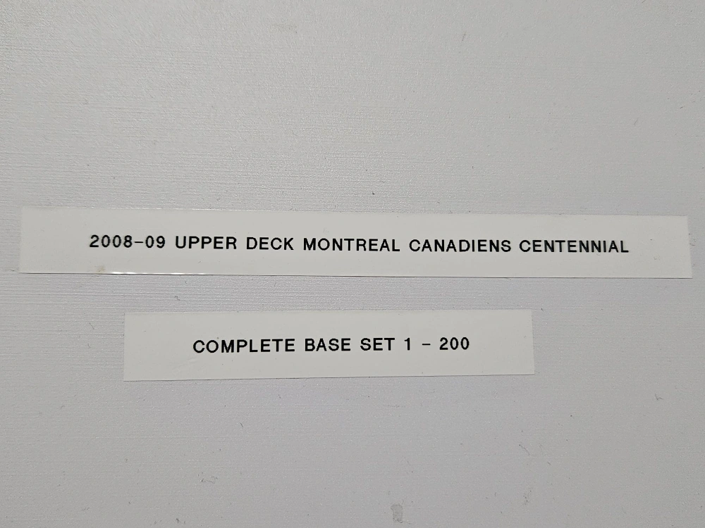 Selling a complete base set of 2008-09 Upper Deck Montreal Canadiens Centennial hockey cards. This set commemorates the Canadiens' centennial season. Includes a binder to keep the cards safe and organized.