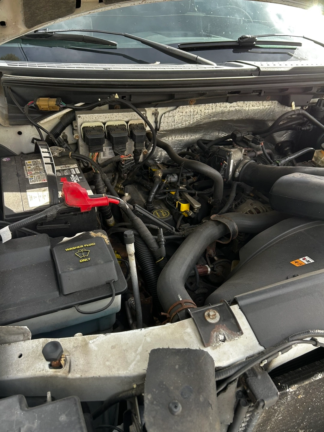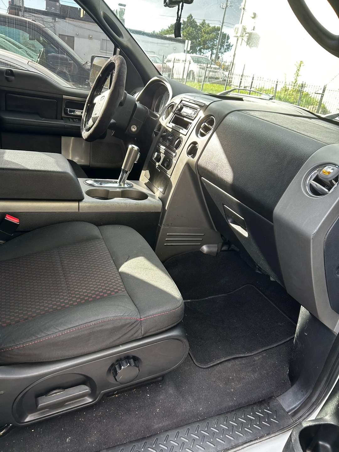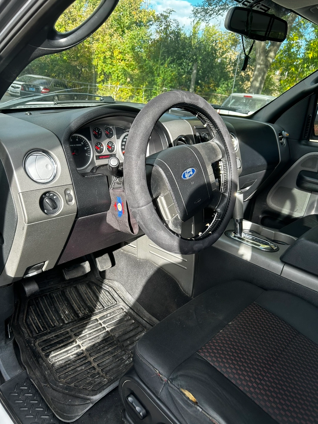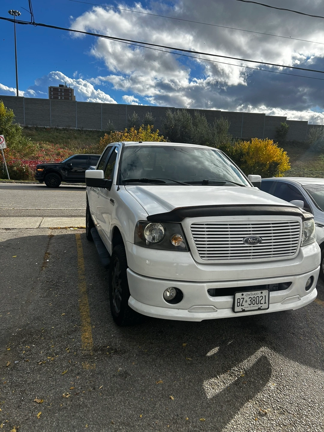 White Ford F150 truck with black interior. Four-door truck with black wheels. All brakes down recently Nothing wrong with truck Small v8 gas engine not the 5.7 triton engine Will need tires and exhaust