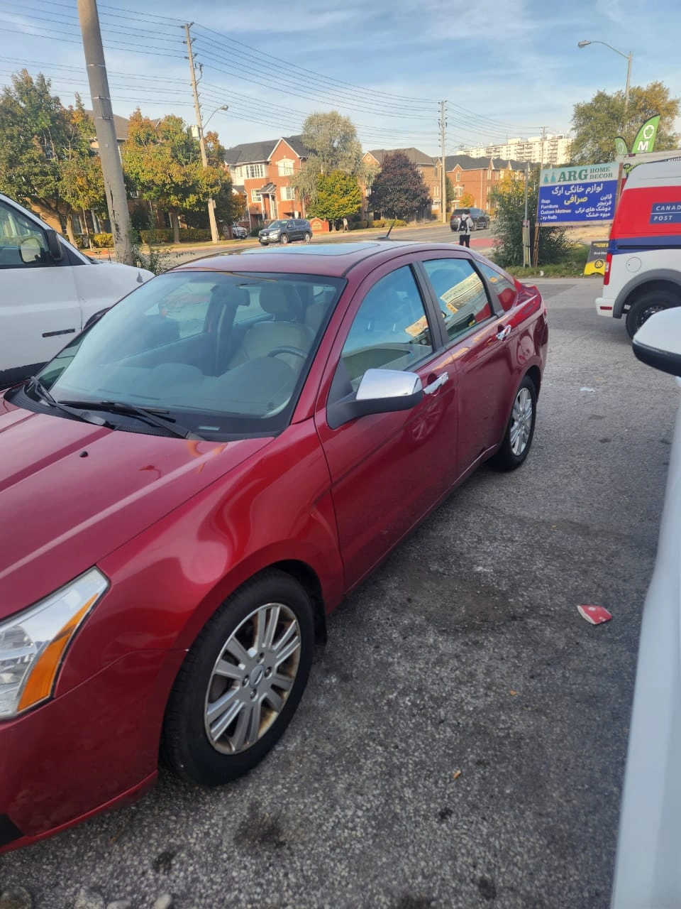 Red sedan. Sunroof. Alloy wheels. Automatic transmission. millage 133,000 km. Clean Leather chairs