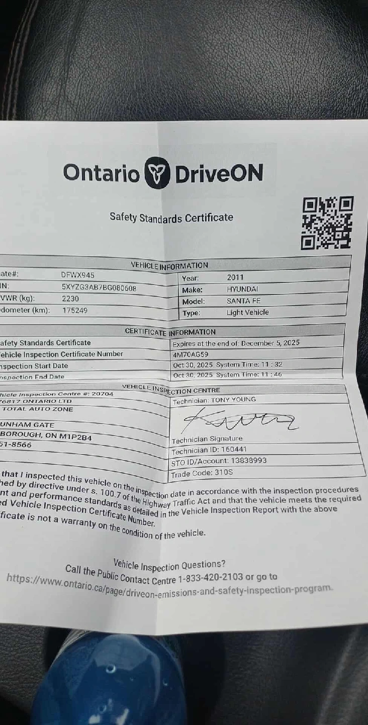 762011 Santa Fe - White with dark grey leather interior. One owner driven since new. 175k kms After market real leather seating. No dents or rust. Winter tires installed, All Season tires included but need rims. runs really well and has been well looked after. safety including price firm LOW MILEAGE ONLY 175km on it NO ANY LIGHT ON DASH its has power locks Power window Heated seats Keyless less Lots storage place in trunk Accident free (Report available in person) Runs smooth safety including!!!! car certified! safety done today.