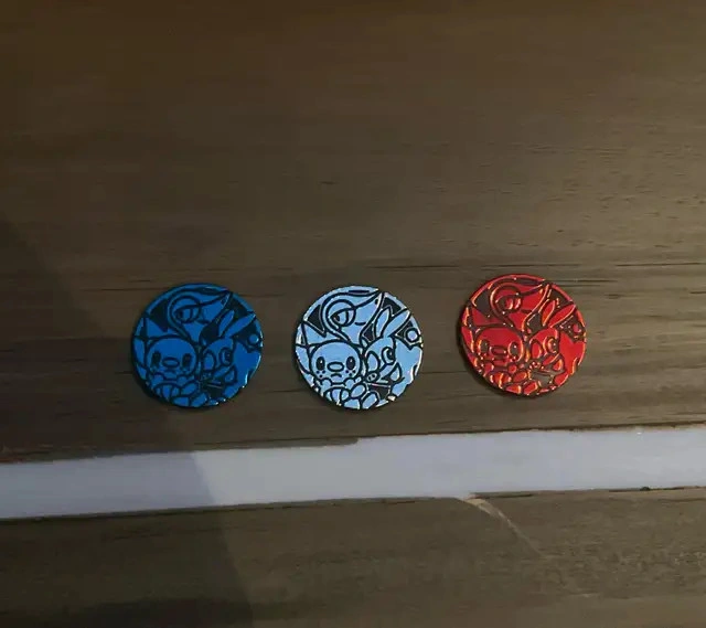 10Colours: silver, blue, red. From the official 2011 Pokemon decks. 3 coins in great condition.