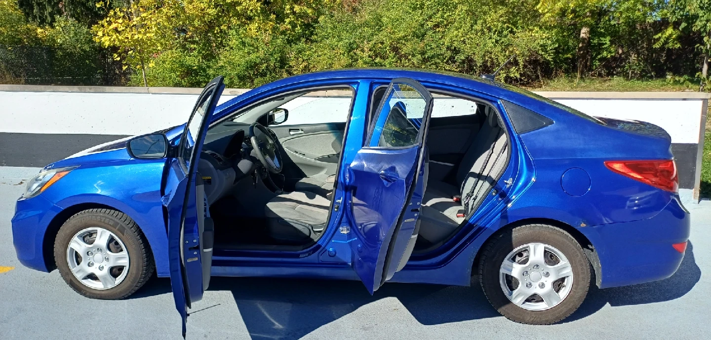 762012 Hyundai Accent sedan with low 167km 4 cylinder no oil leaks powerful engine No warning lights 1.6 liter No rust, nice clean body . price $2800 as is no safety Accent free clean title.