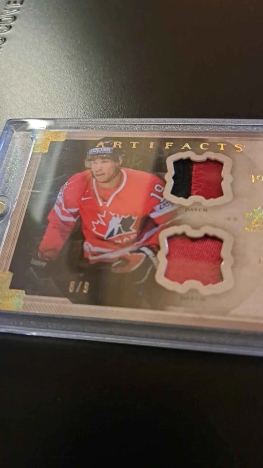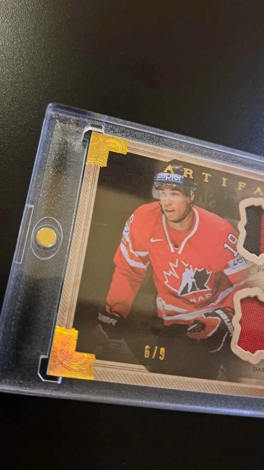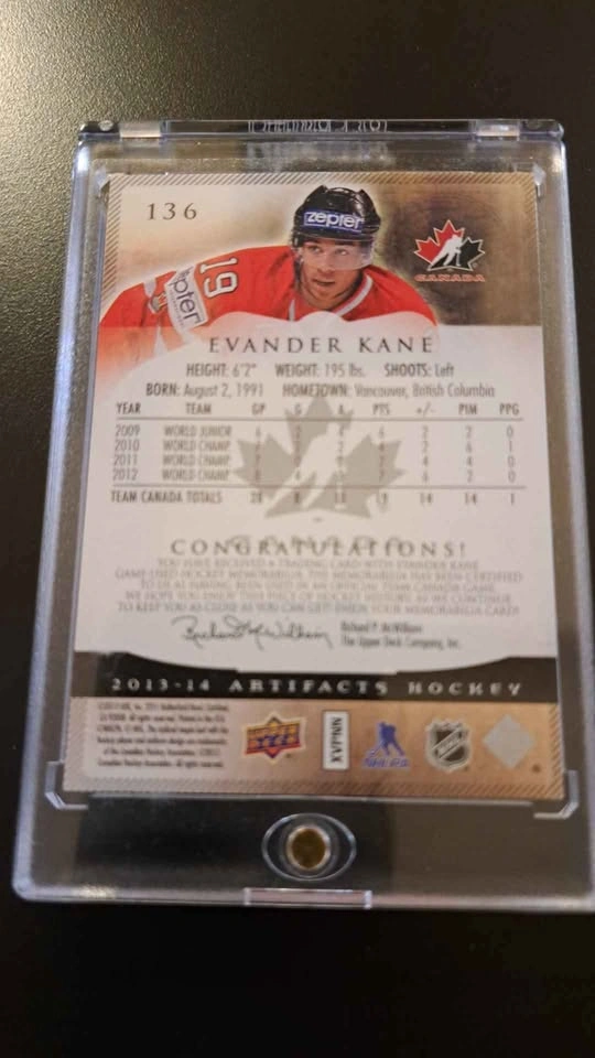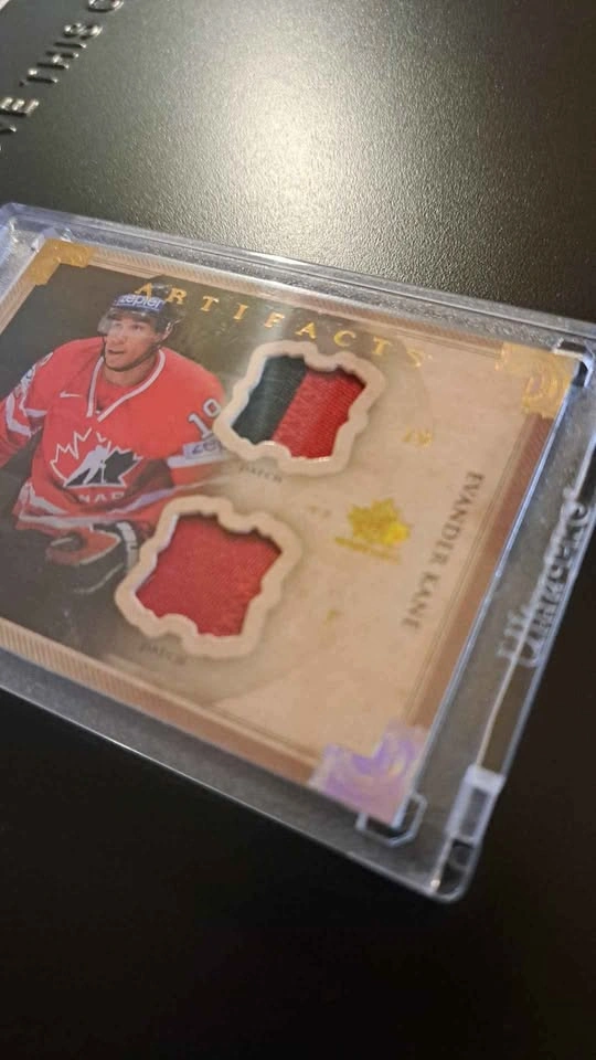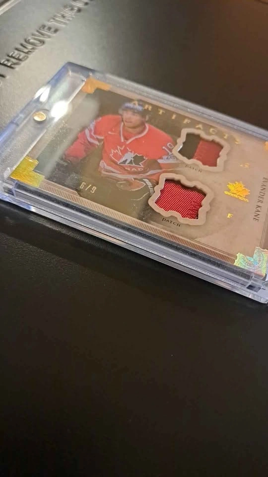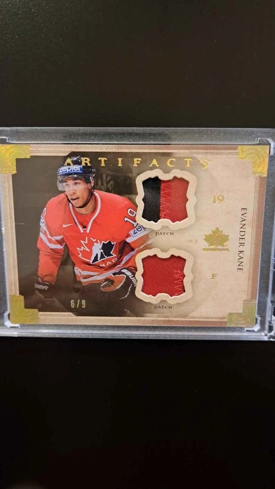 10Evander Kane gold Upper Deck artifacts. Team Canada materials. Rare short print 6/9. Any marks shown in the pictures are on the actual one touch hard case. Card was protected since day one. Let me know if you're interested!