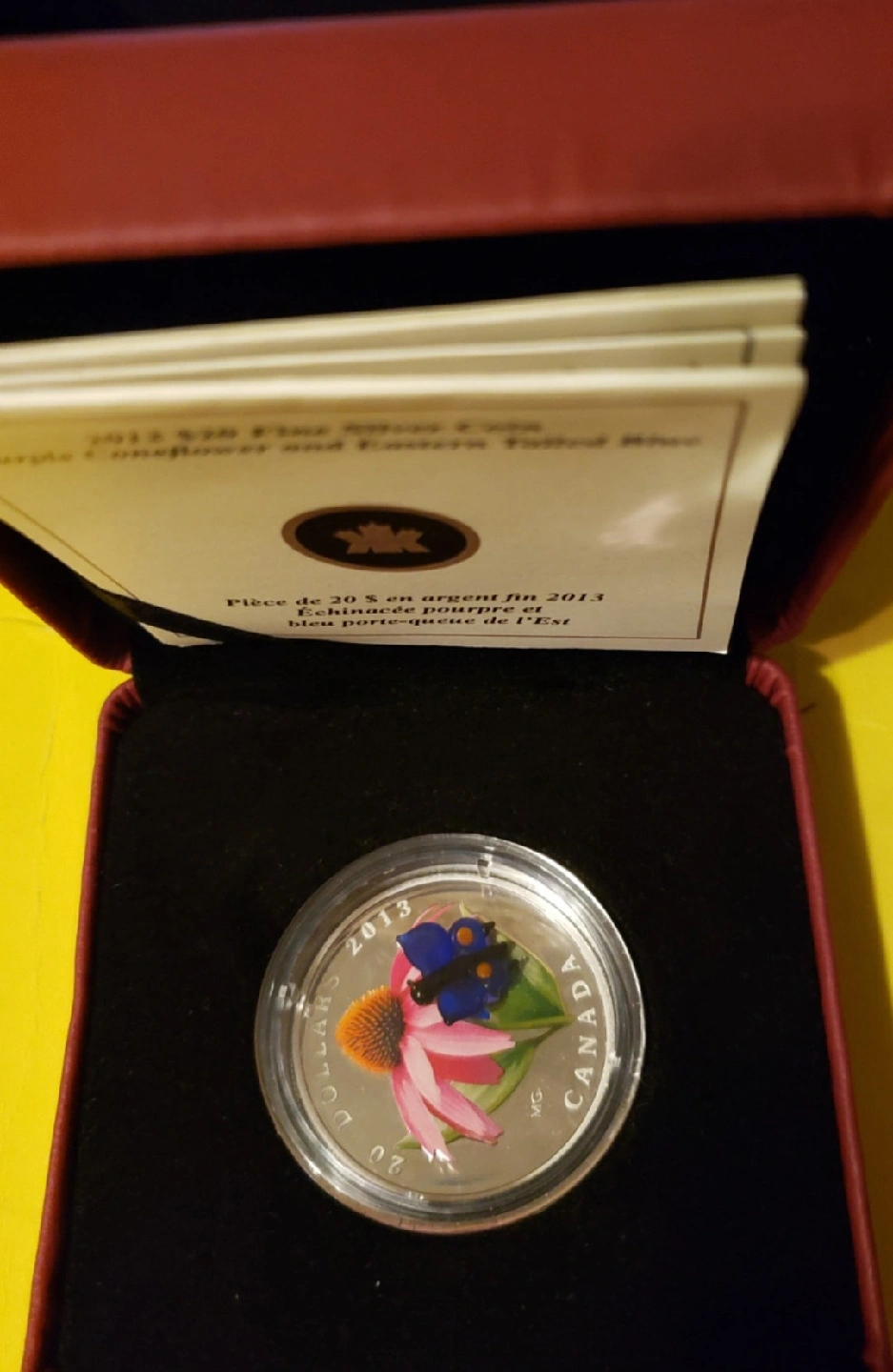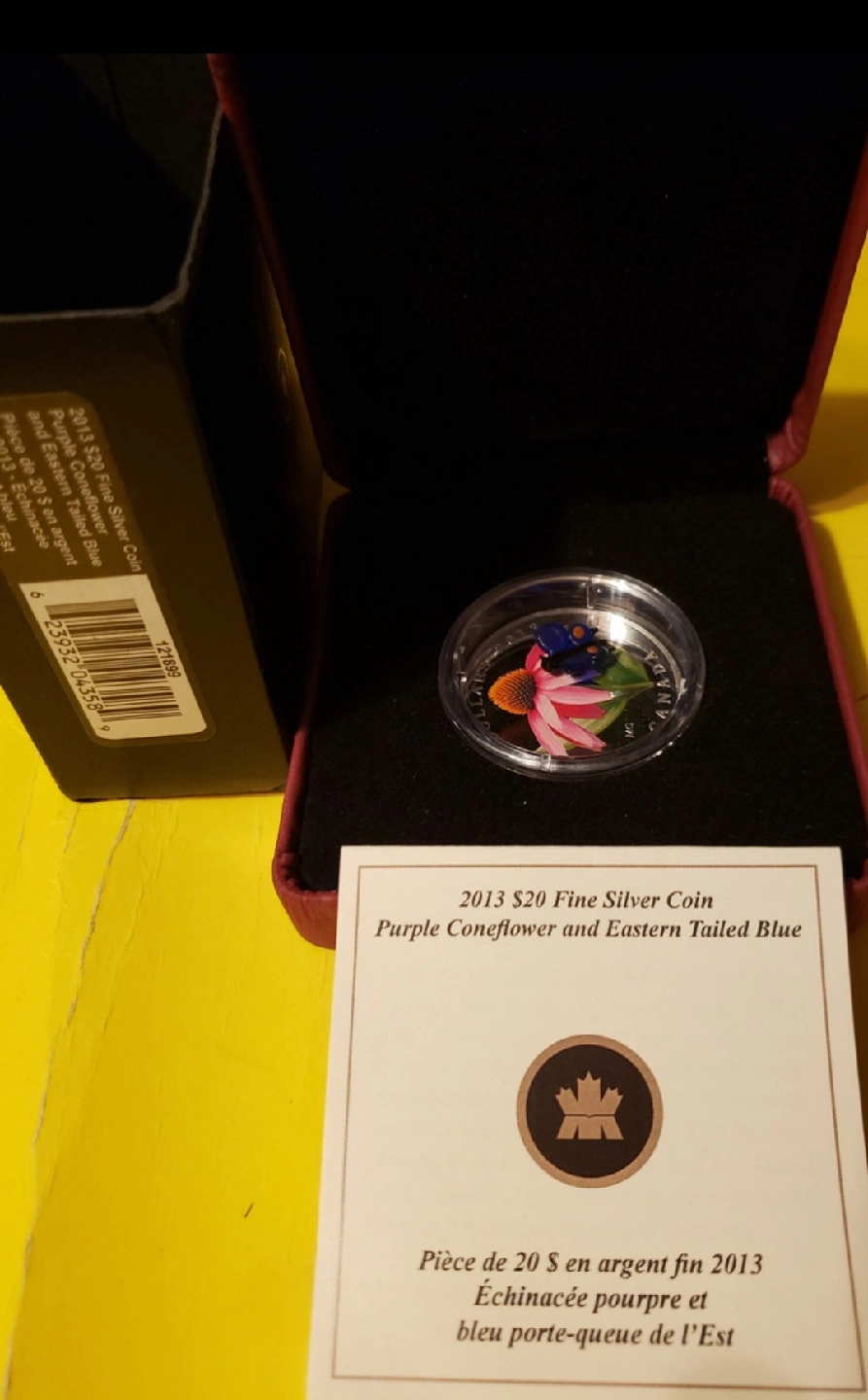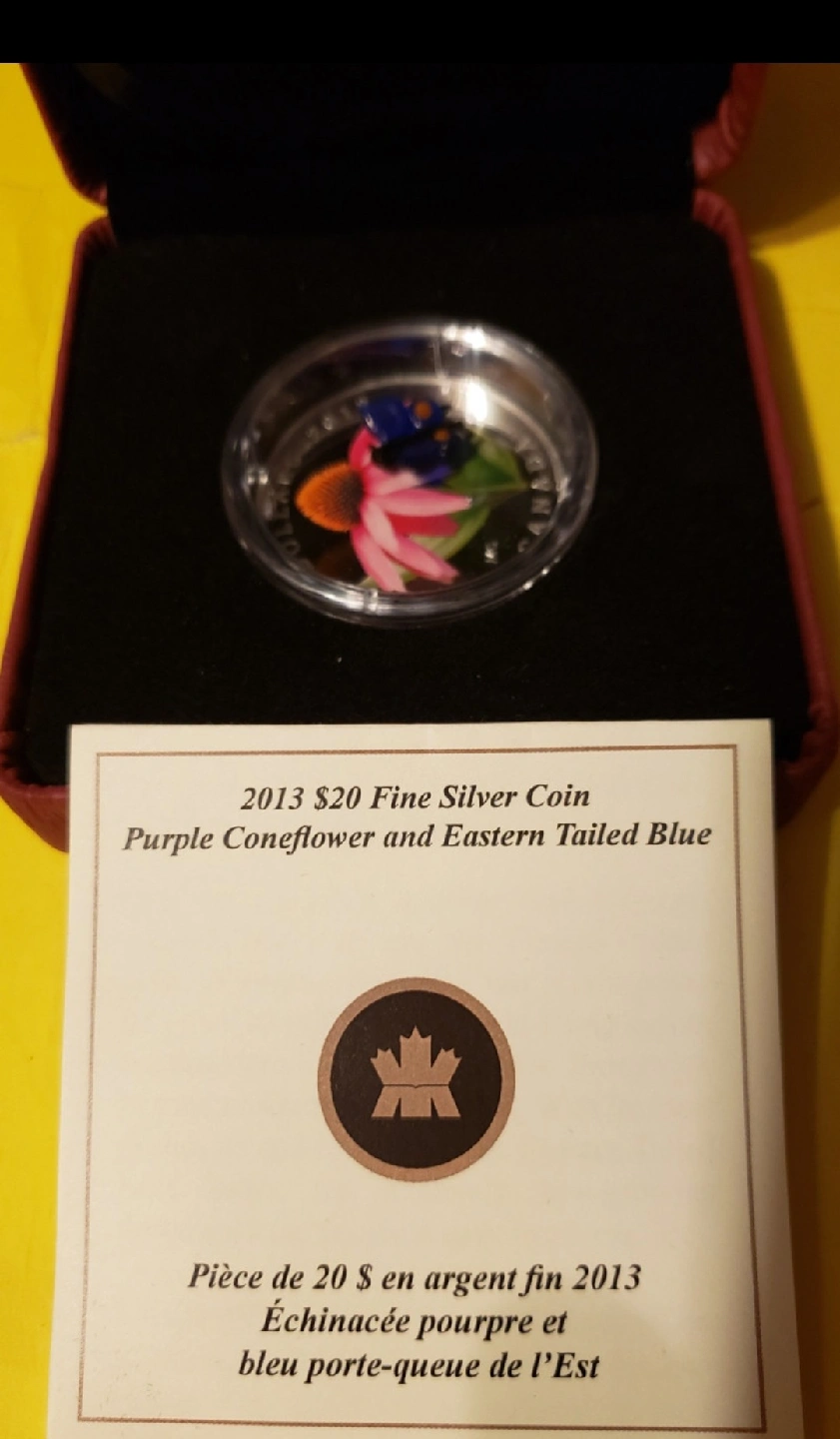 18Selling a 2013 $20 fine silver coin featuring the Purple Coneflower and Eastern Tailed Blue design. It comes in its original box and COA ASKING 200 $ CONTACT ME IF INTERESTED CHECK MY OTHER ADS