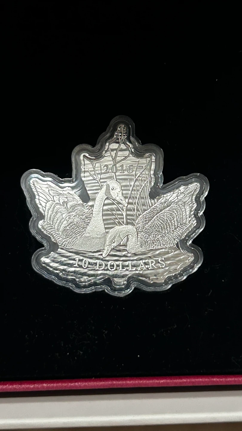 Selling a beautiful 2016 $10 fine silver coin featuring a pair of Canada geese. It's 99.99% pure silver, with a width of 39.6 millimetres and a height of 38 millimetres. The coin has a nominal metal weight of 15.67 grams. The reverse image is by Canadian artist Trevor Tennant. The obverse features the effigy of Her Majesty Queen Elizabeth II.