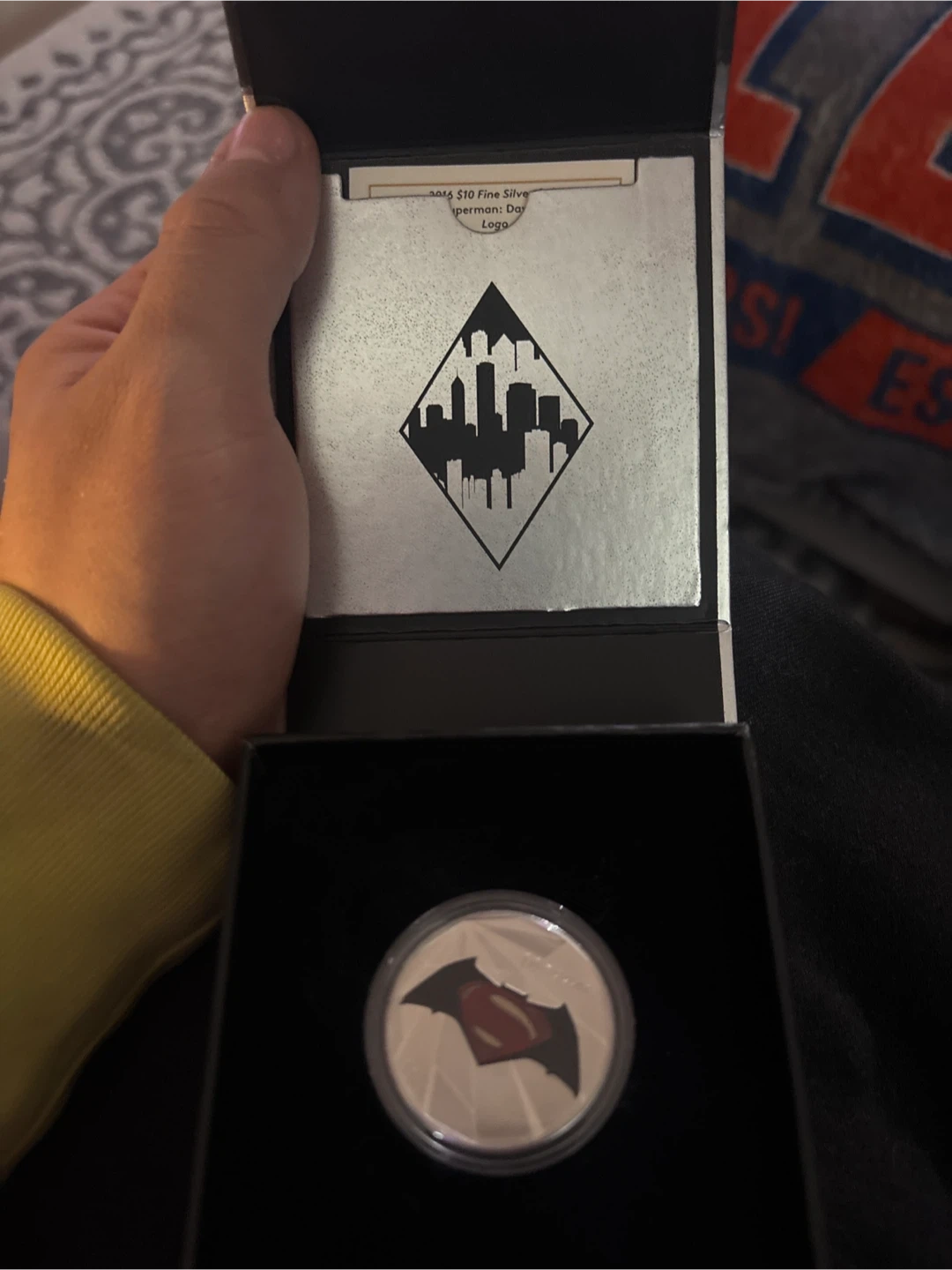 60Selling a 2016 $10 fine silver coin featuring Batman vs Superman. It comes in its original box.