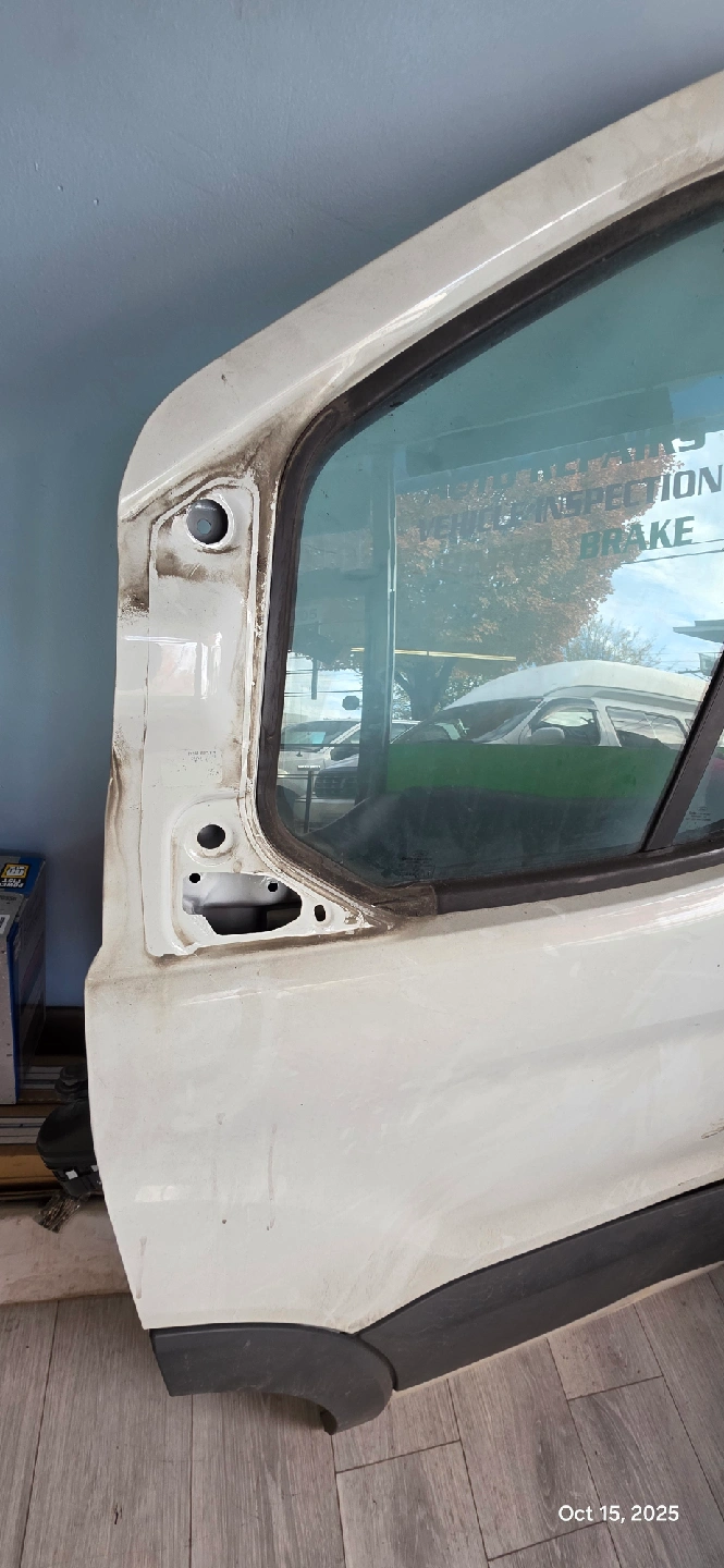2017 Ford Transit-250 Base 3.2 Turbo Diesel ... Left Front door Selling a white side door for a Ford Transit van. Please note that it shows signs of wear and tear with visible scratches. Perfect if you're looking for a replacement door.
