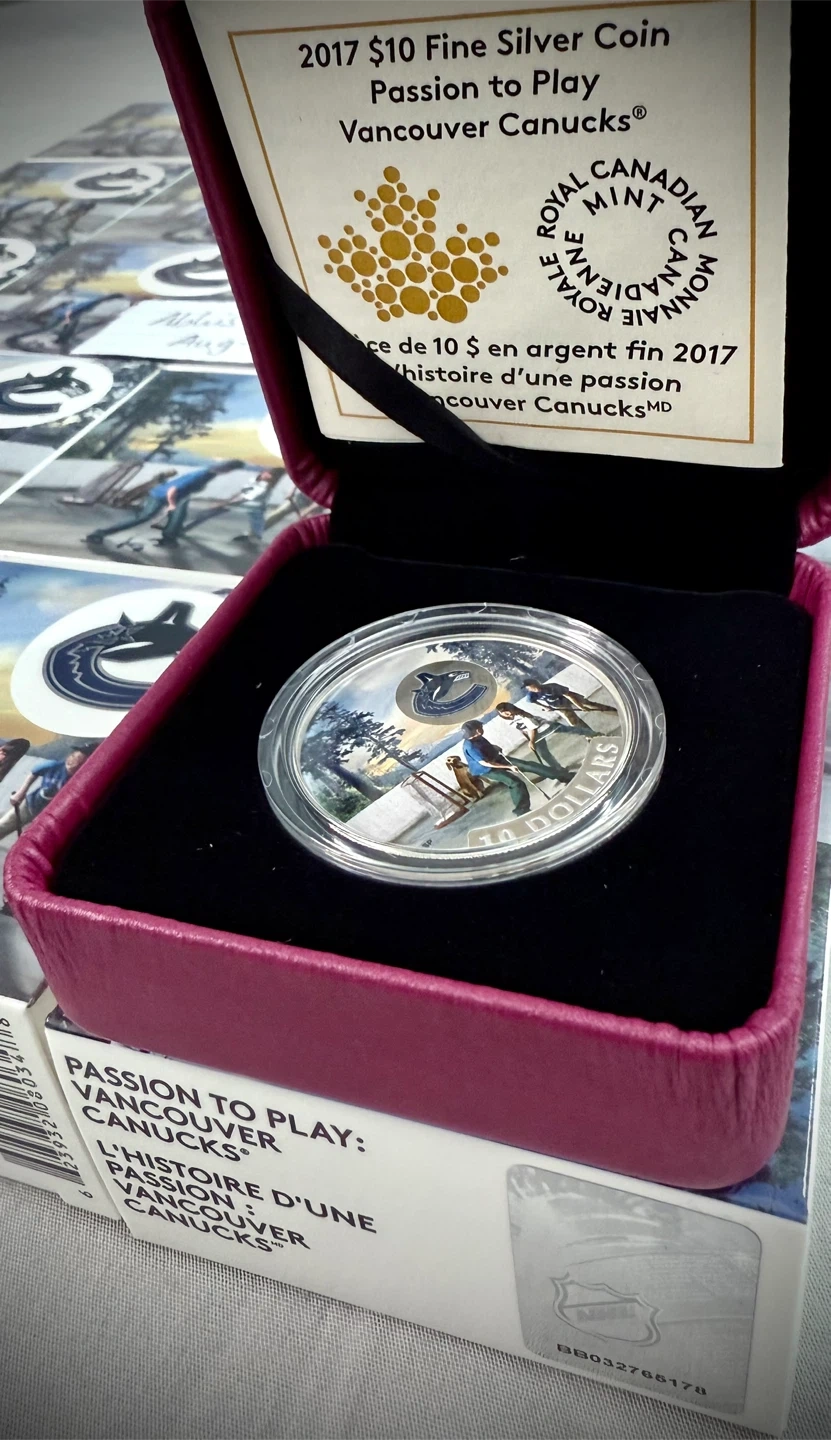 Selling a brand new 2017 $10 fine silver coin, "Passion to Play: Vancouver Canucks". It's still in its original packaging and has never been opened. A great piece for any Canucks fan or coin collector! Approx 70 available * 2017 $10 Passion to Play: Vancouver Canucks - Pure Silver Coin :- half Ounce Only 10000 made ( very limited) 45 each for 10 44.50 each for 20 44 each For 30 43.5 each for 40 43 for all