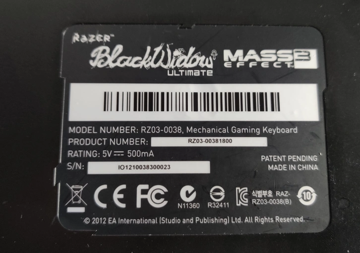 Razer Black Widow Ultimate Mass Effect 3 RZ03-0038 Mechanical Gaming Keyboard