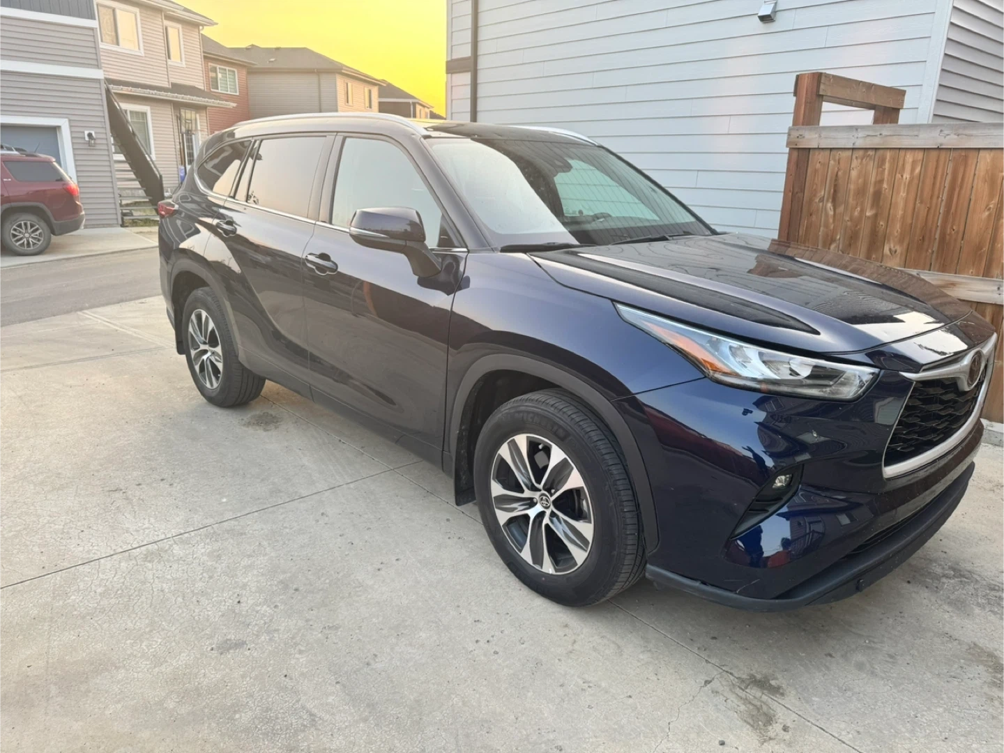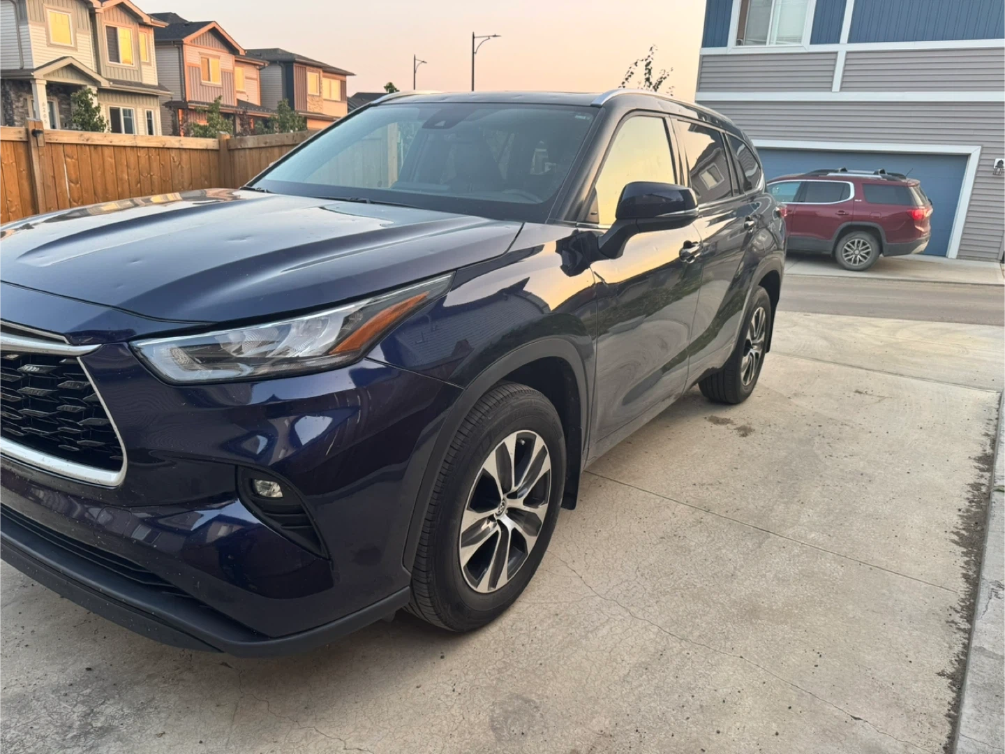 Selling a blue Toyota Highlander SUV. In very great condition very low on km 74km, no issues almost brand new It has some minor visible hail damage on the hood and roof. Please take a close look at the photos! Very reliable vehicle with 7 seats