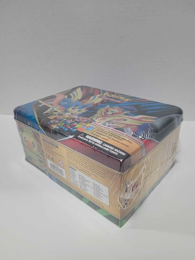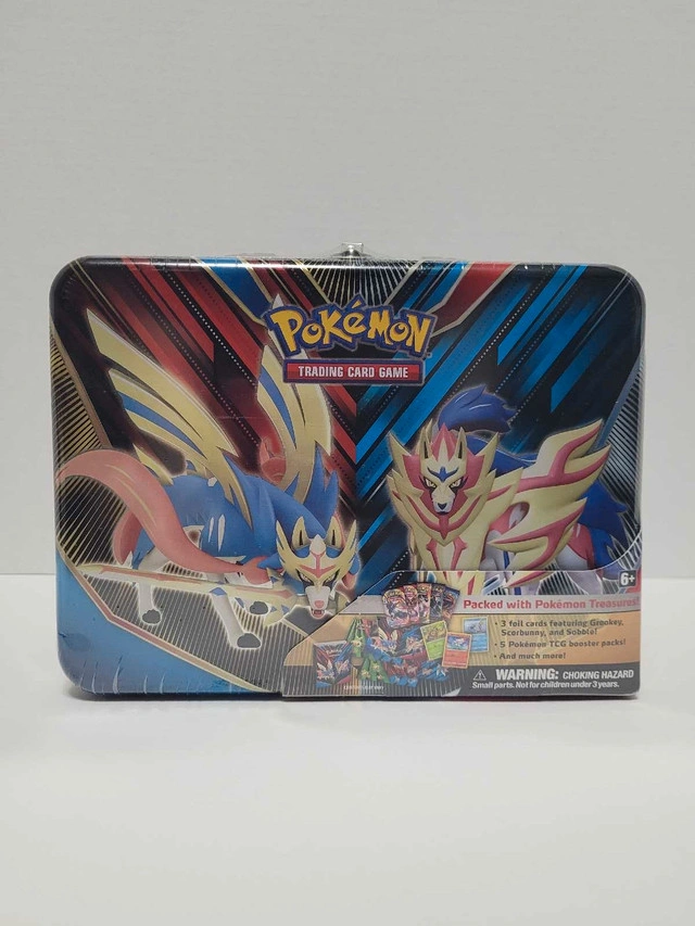 NEW sealed Pokemon Collector's Chest! This sturdy metal case contains more than a dozen Pokemon goodies, including many not found anywhere else. Includes 3 foil cards featuring Grookey, Scorbunny and Sobble, 5 Pokemon TCG Booster Packs, a cool Pokémon coin featuring Grookey, Scorbunny, and Sobble, 4 colorful sticker sheets, a mini portfolio to store your favorite cards, a Pokémon notepad featuring Zacian and Zamazenta and a code card for the Pokémon TCG Online. I will only reply and meet Sunday to Friday. I will do combo deals with my other listings, so check them out. Thanks!