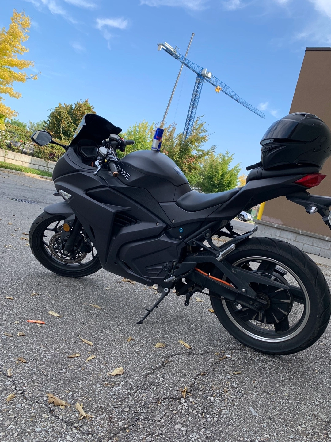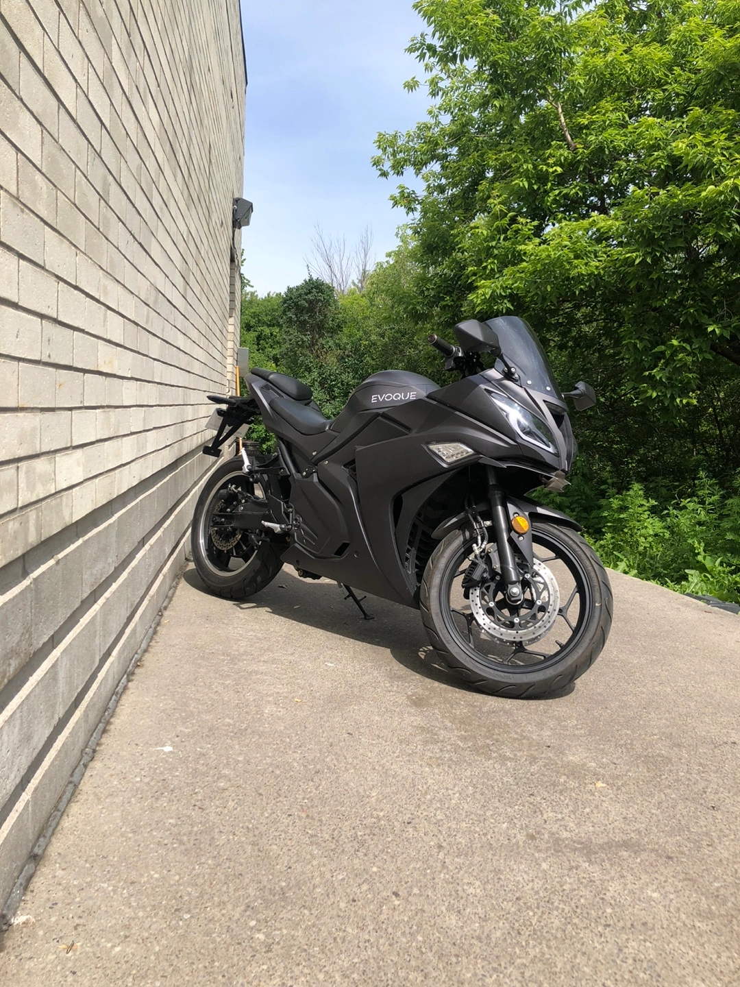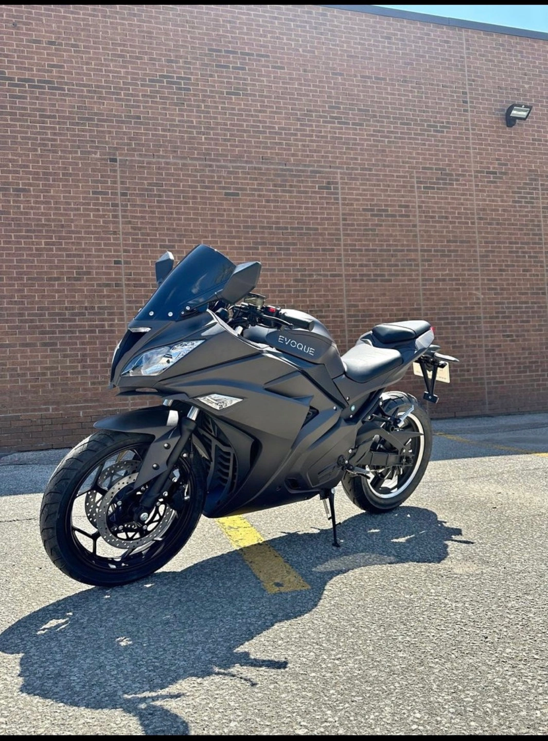 2024 Black electric motorcycle. Good condition like brand new used just couple months,. Includes helmet. Fast and stylish. lithium battery 73H 60A Can go more than 120 km full charge Call or text. Greorge. 6477132707