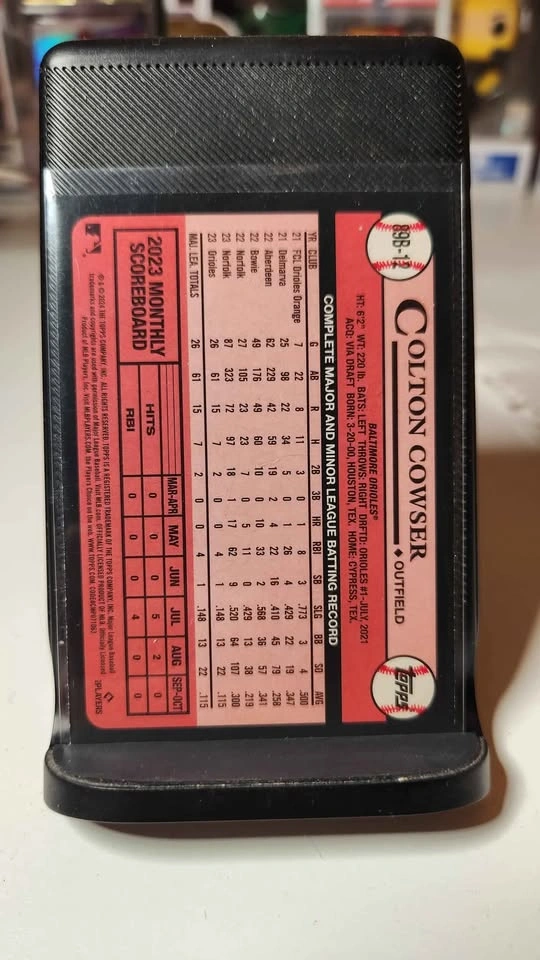 652024 Topps Baseball 1989 Throwback featuring Colton Cowser of the Baltimore Orioles. Retro Topps design with a bright modern finish — a great card for Orioles fans and rookie collectors alike! 💎 Condition: Near Mint / Mint ⚾ Set: 2024 Topps Baseball 🕹️ Insert: 1989 Throwback (89B-12) 📦 Pickup in Hamilton Item Located West Hamilton Mountain near Mohawk Rd and Rice Ave