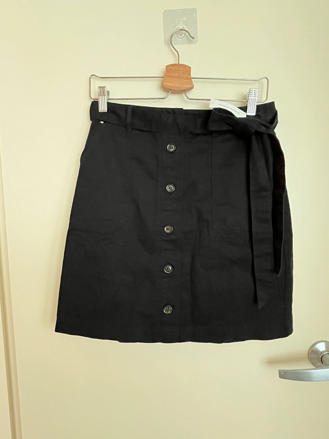 Cute black cotton skirt by Banana Republic, new with tags. Size 2 Tall. Wrap belt is removable.