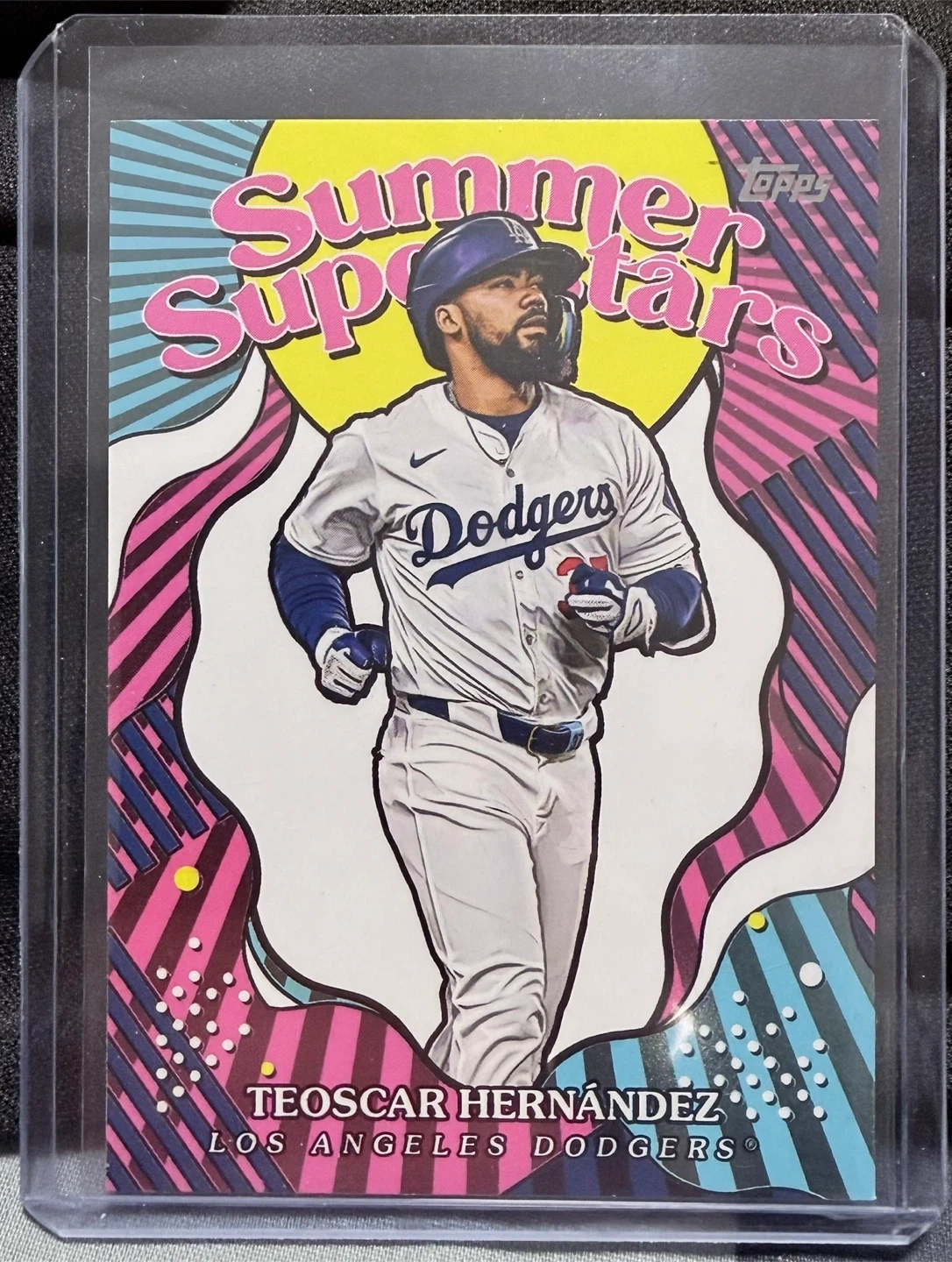 65Selling a Teoscar Hernández baseball card, featuring him as a Los Angeles Dodger! The card is from the Summer Superstars series. It highlights Teoscar's achievements, including being an MLB All-Star Game starter. A great addition for any baseball fan or card collector