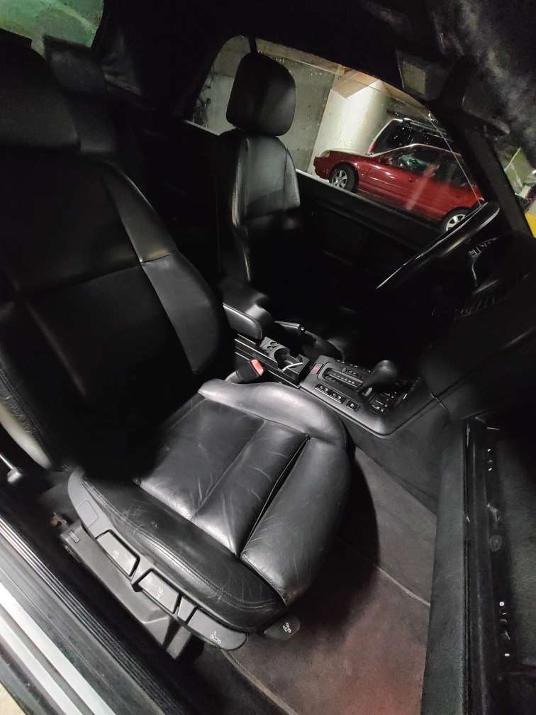 -driver leather seat typical closest edge to door tear/wear. Can be easily covered with small strip of glue on leather.