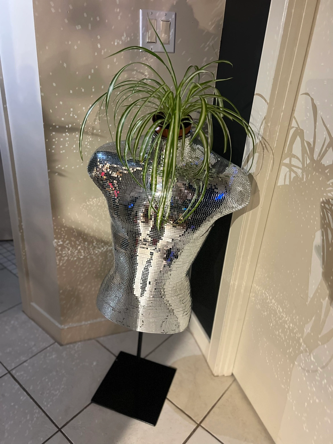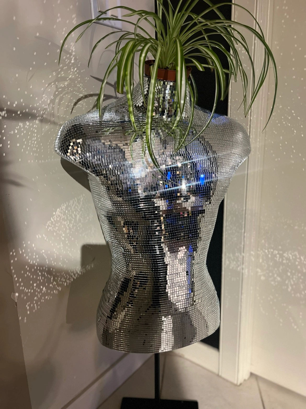 Custom made disco ball male torso plant holder! Definitely a conversation piece. Made with love for a special home. Firm on price as this project was labour intensive and one of a kind.