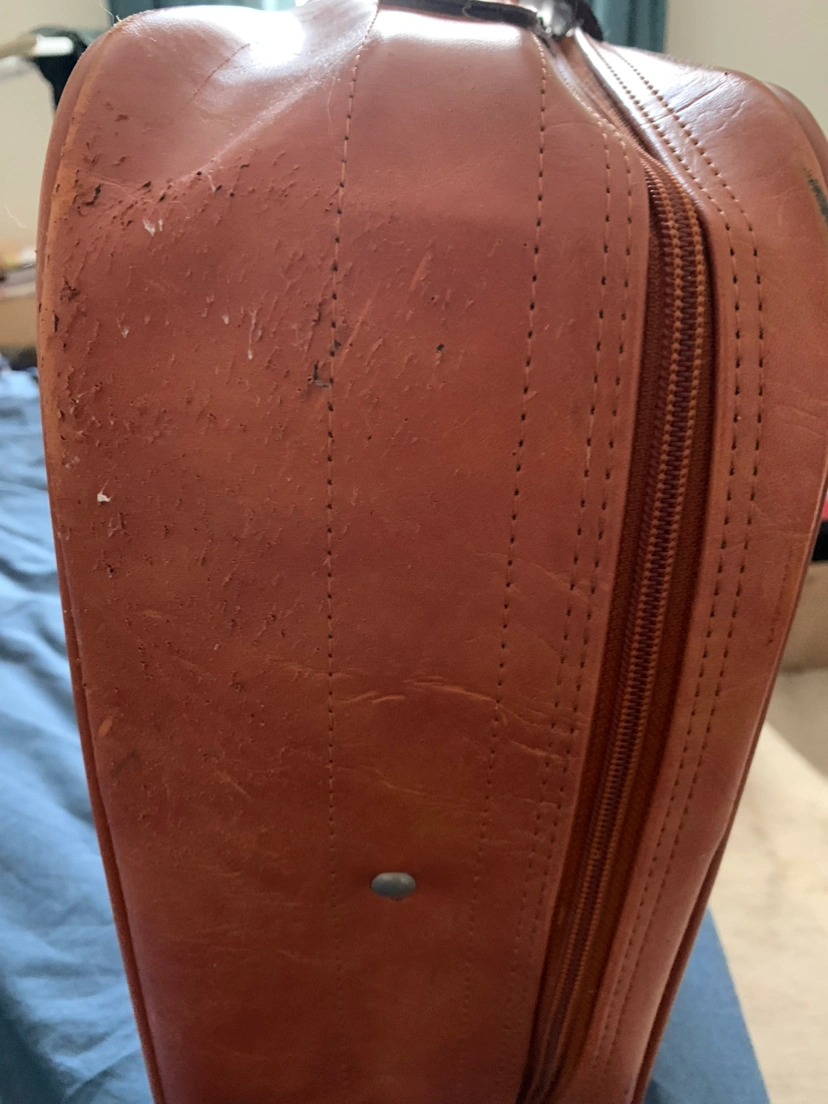 I love this suitcase so much but it has worked very hard in the last 50+ years. Free to a loving home who will see the value in its character and not mind a few: scruffs, scratches, missing feet, and the like.