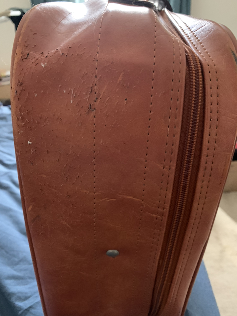 I love this suitcase so much but it has worked very hard in the last 50+ years. Free to a loving home who will see the value in its character and not mind a few: scruffs, scratches, missing feet, and the like.