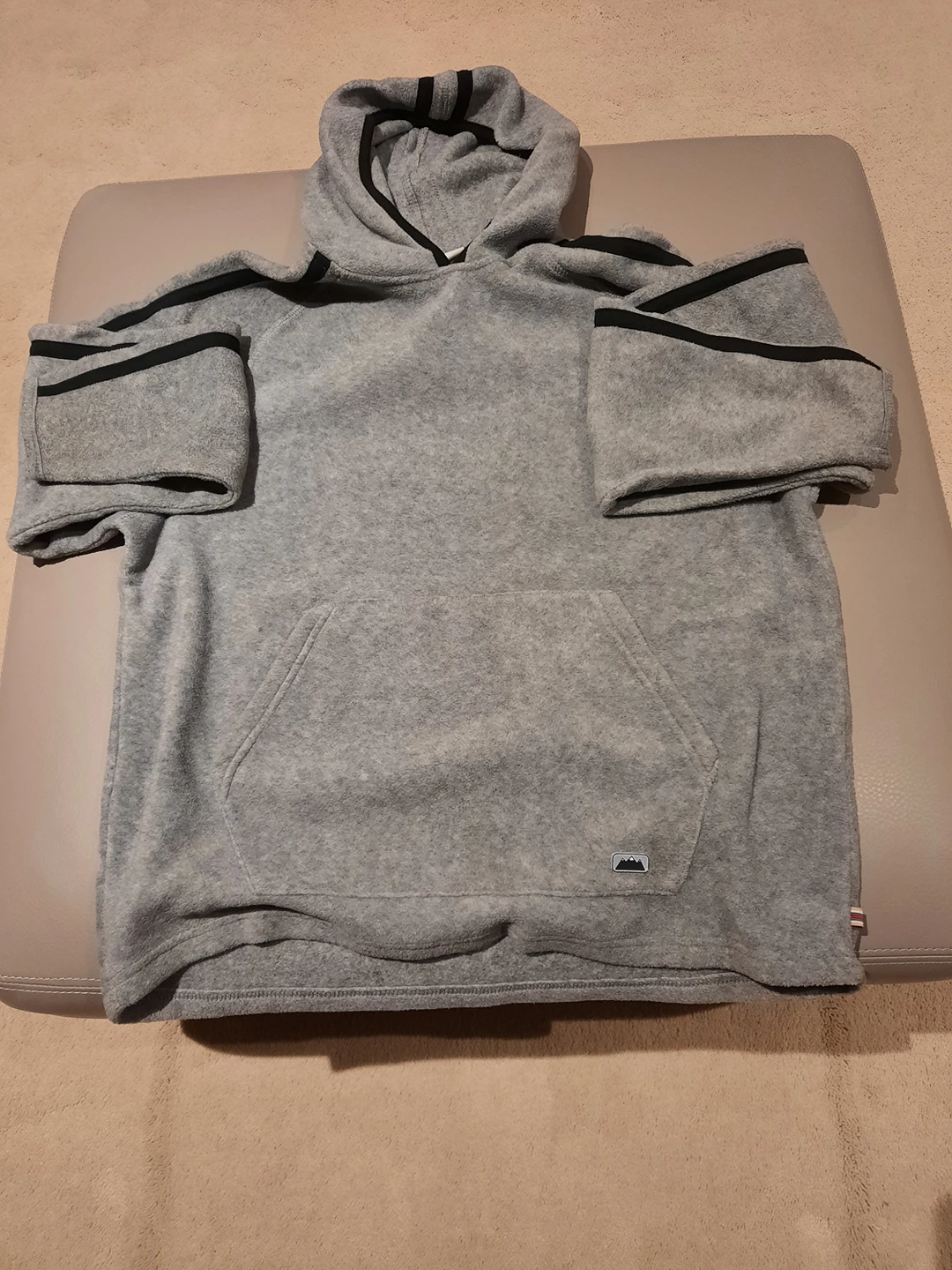 Brand new boys size L(14-16) or men's (s/m)fleece hooded top gray with black from pets and smoke free home serious buyers only