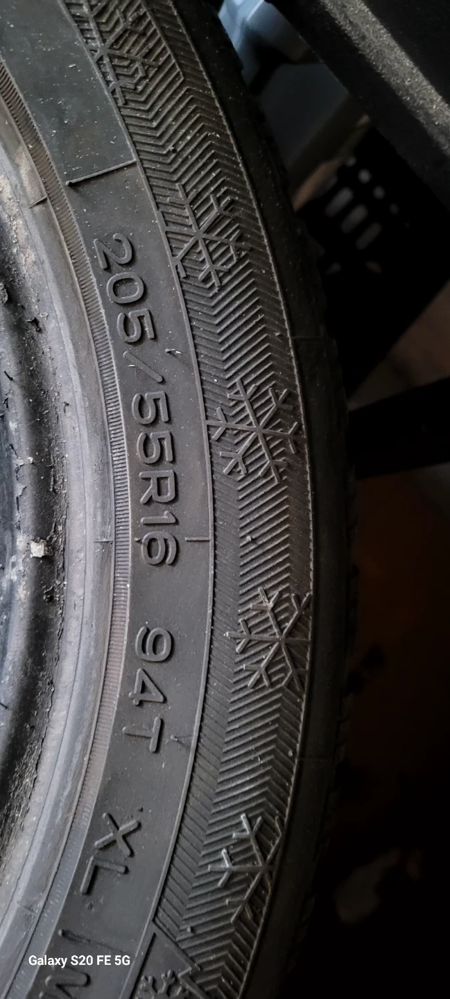 10Selling a set of winter tires, size 205/55R16 94T XL. They have a snowflake symbol indicating they are suitable for winter conditions