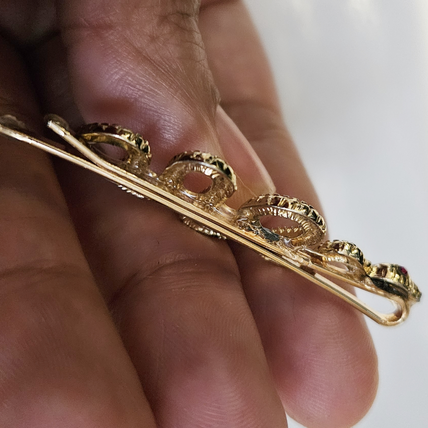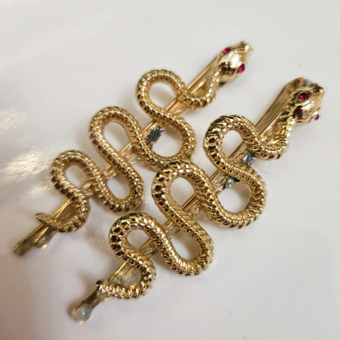 (2) golden color snake with red eyes hair clips. Slide clip style.
