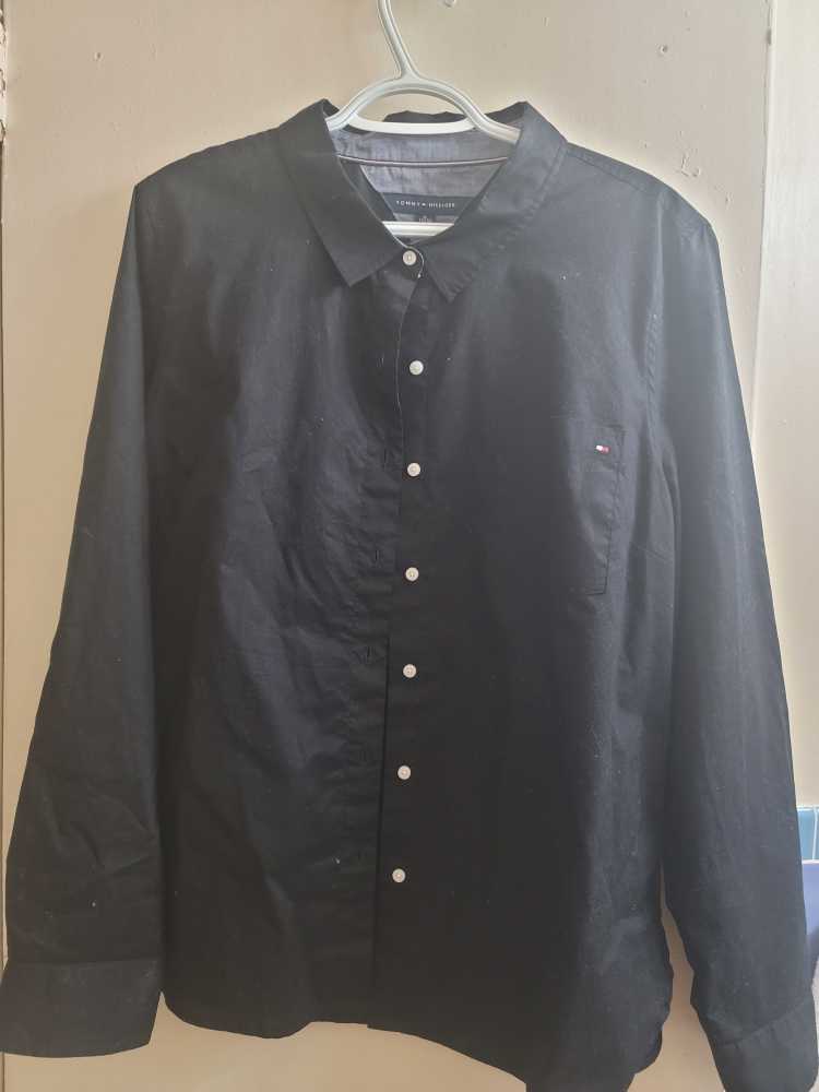 I have only worn this one time! I have no use for it anymore, it is an XL. Completely honest here, I have no idea what the stain is on the back of the shirt. I wore it once to a wedding and the weather wasn't the greatest so maybe it had to do with that? Since then it's been sitting in my closet, I've taken it out to look at it and put it back but I've only worn it once.