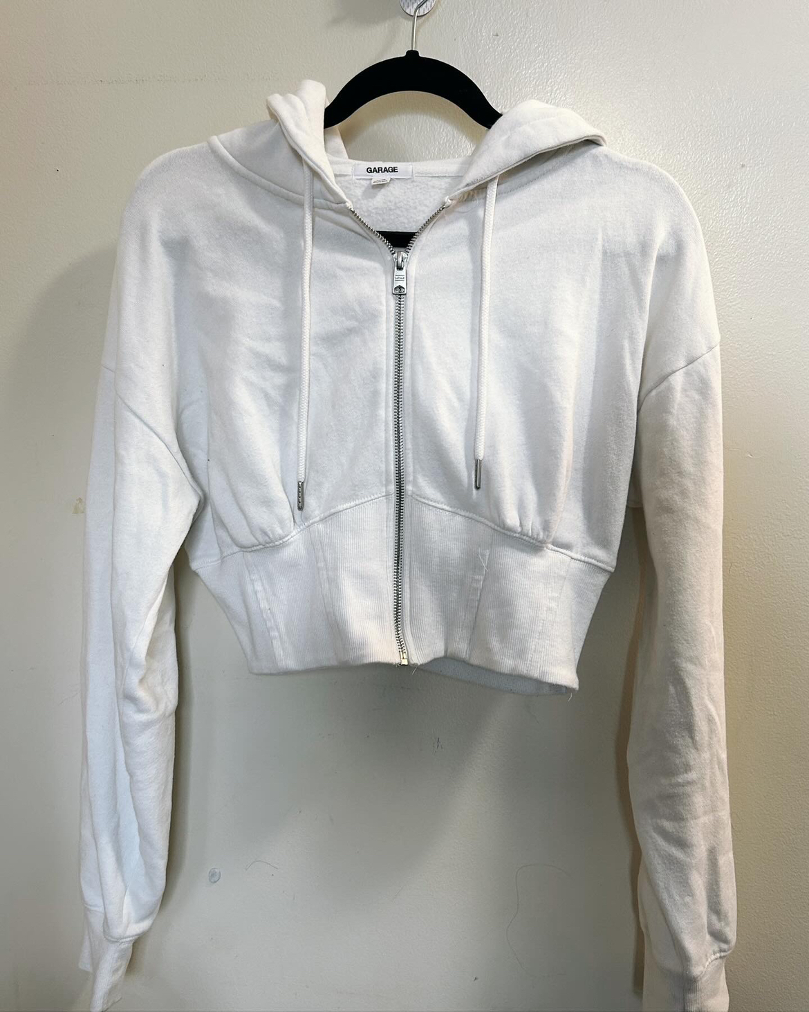 White Garage corset zip up jacket, used but I’m good condition, has minor minor stains on the sleeves that’s why im selling for cheap. Bought for $45+
