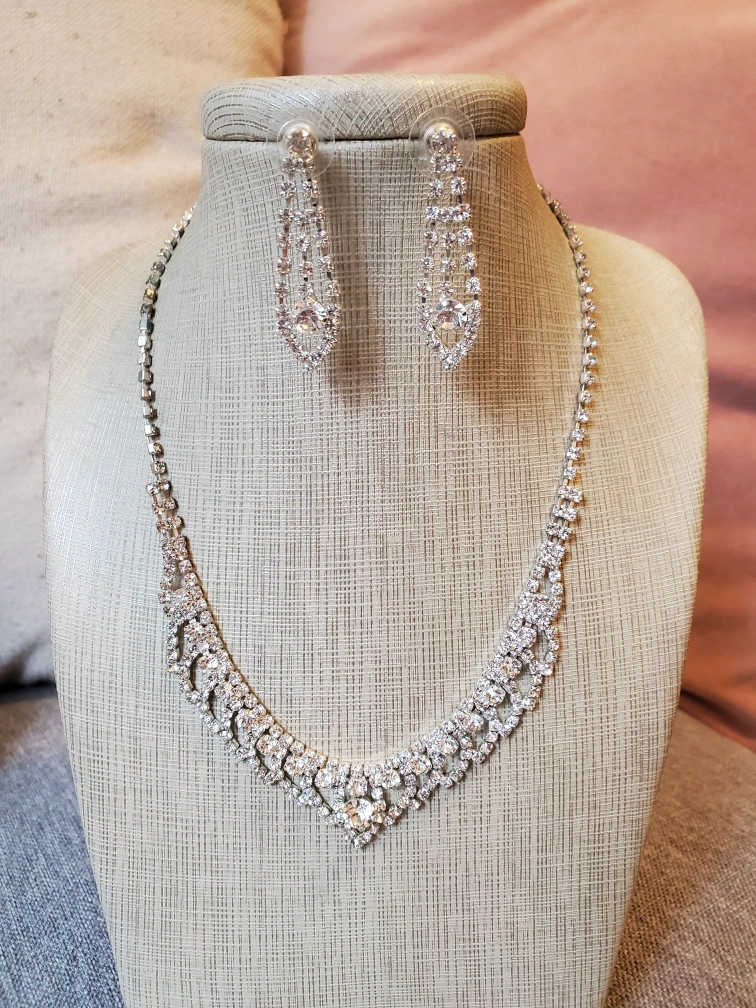 Gorgeous Rhinestone Necklace & Earring Jewelry Set