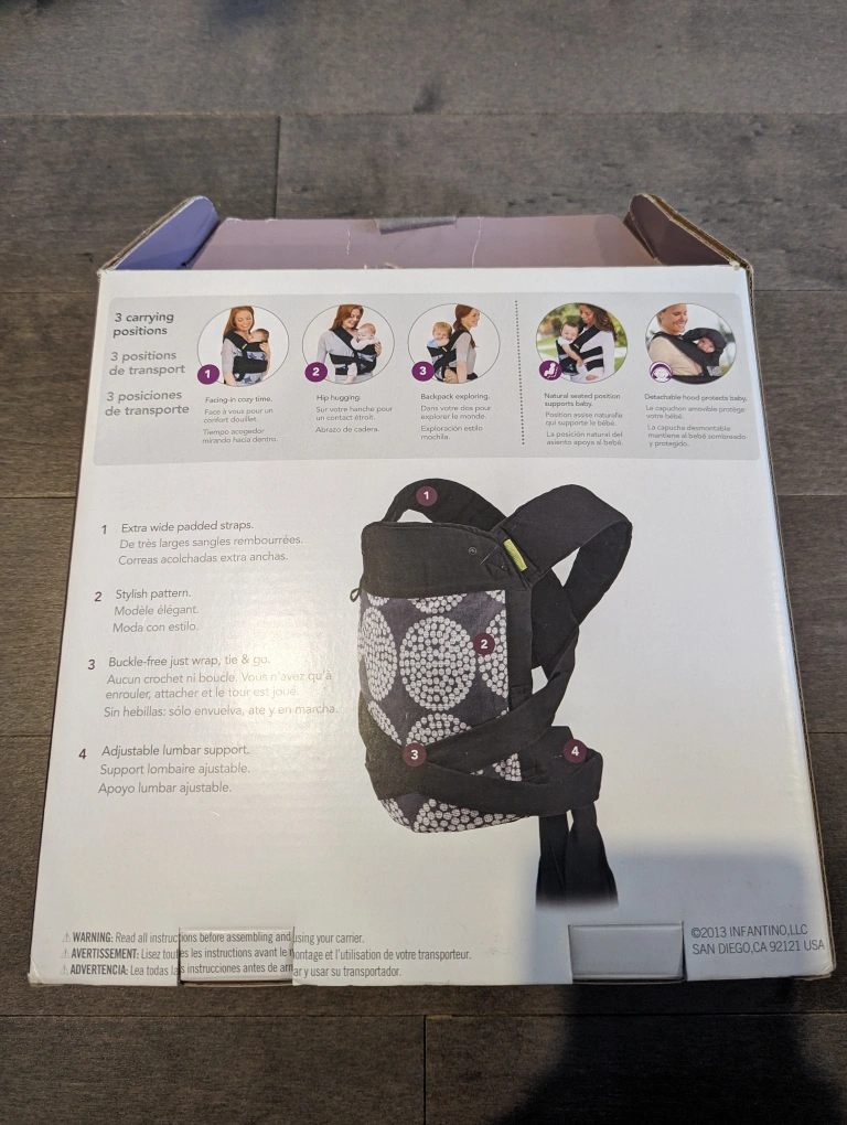 3 carrying positions 8-36lbs https://can.desertcart.com/products/76539907-infantino-sash-mei-tai-carrier-black?gad_source=4&gclid=Cj0KCQjw_-GxBhC1ARIsADGgDjsKChPt3jsQQ4vHg8tBPwoa9vTFPCt1hpx1xLeY2Kuv4LJsg8fXoTUaAr7hEALw_wcB 🚭 Smoke / Pet Free Home 🏡 Willing to meet elsewhere also.