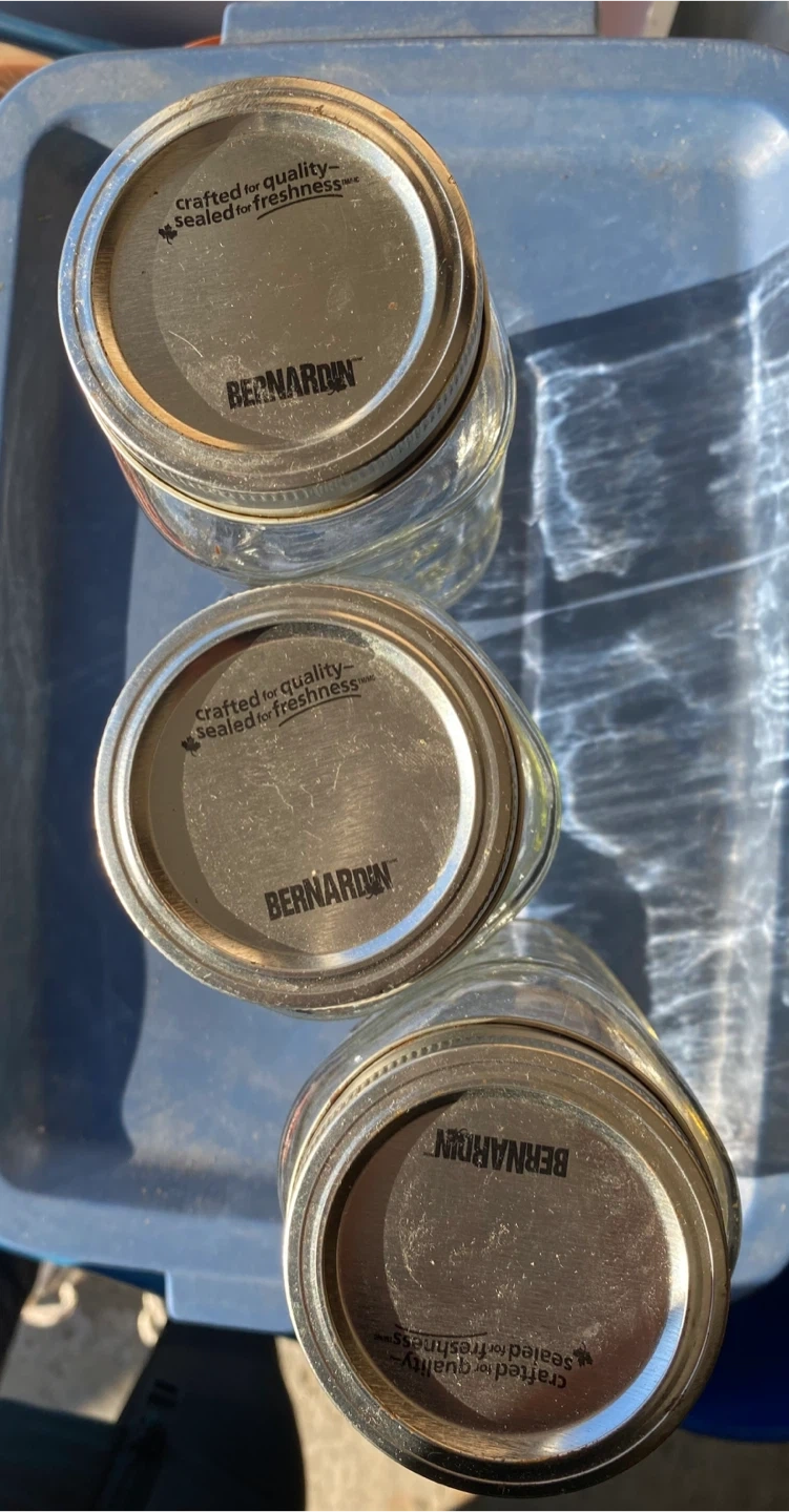 Selling 3 Mason jars with lid and measurement marks for reference.